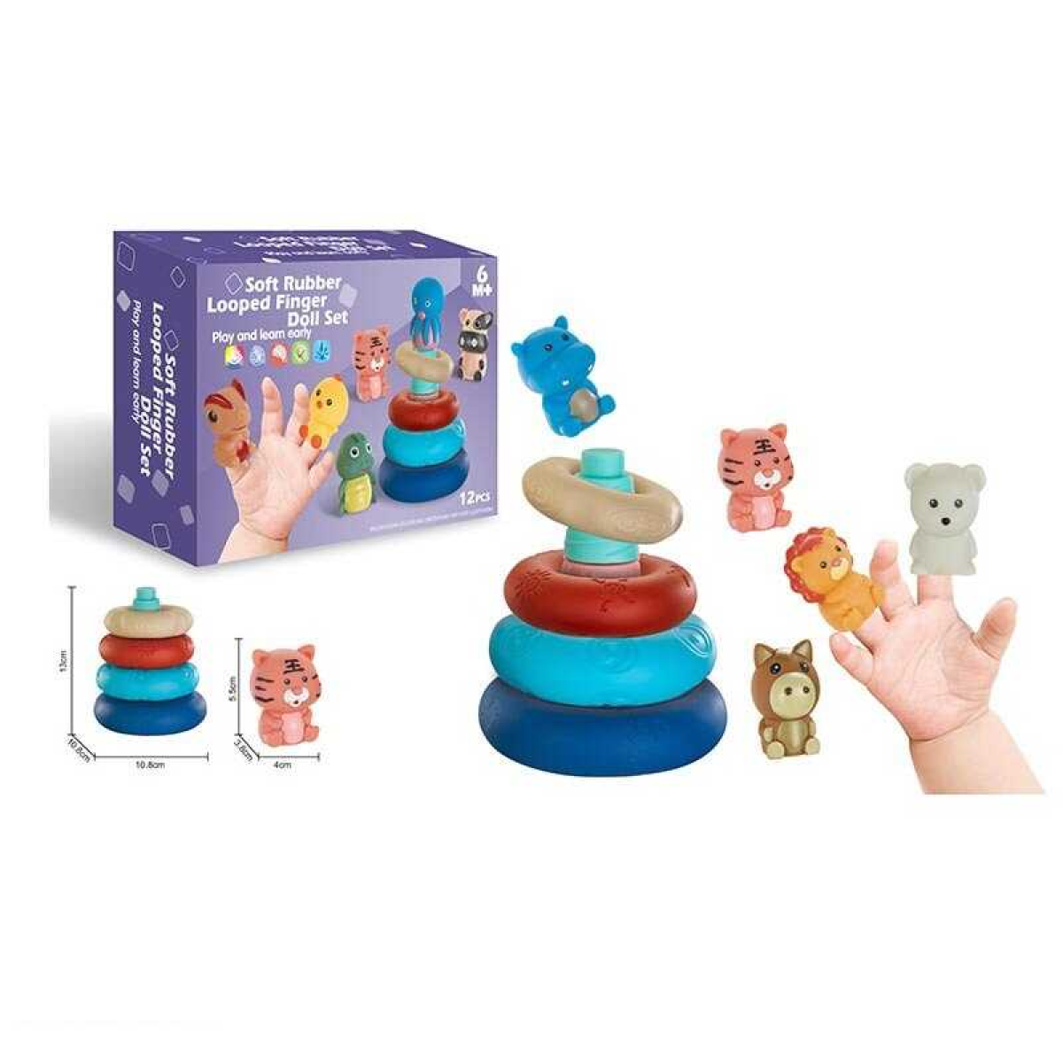 Пірамідка 1275 (48) розбірна, 4 кільця, 5 фігурок тварин, в коробці