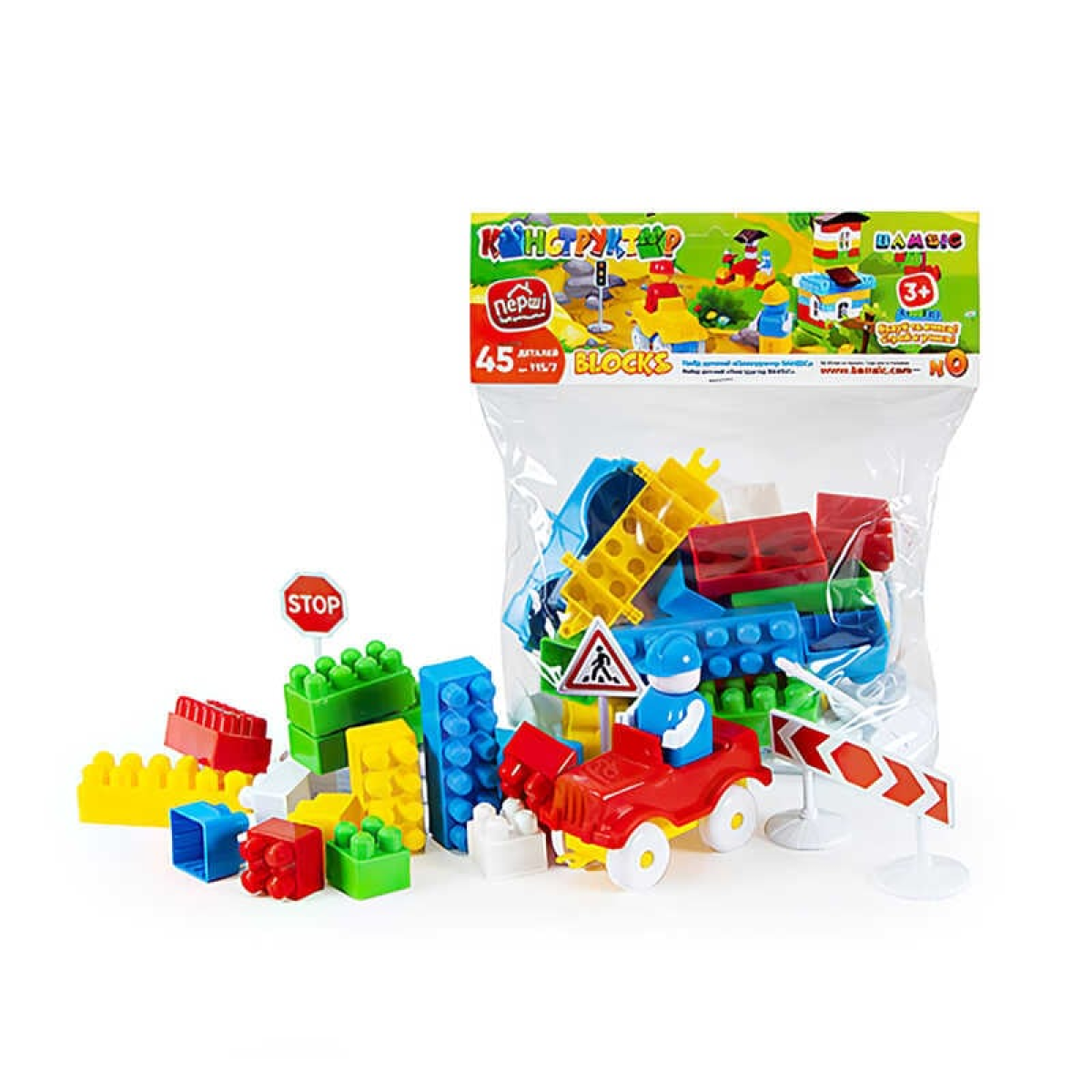 гр Конструктор “BAMSIBLOCK №0“ 115/7 (25) “BAMSIC“, 45 деталей, машинка, дорожні знаки, в пакеті