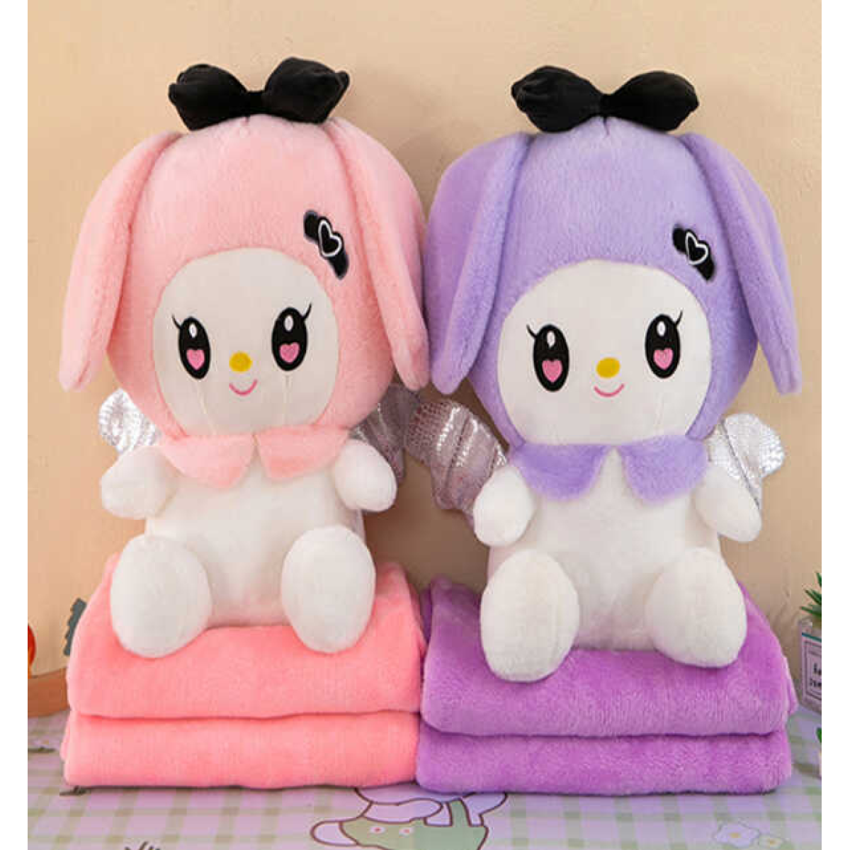 • М`яка іграшка M 18274 (50) 2 види, герой, висота 43см, сидяча, бантик, плед: 175х105 см