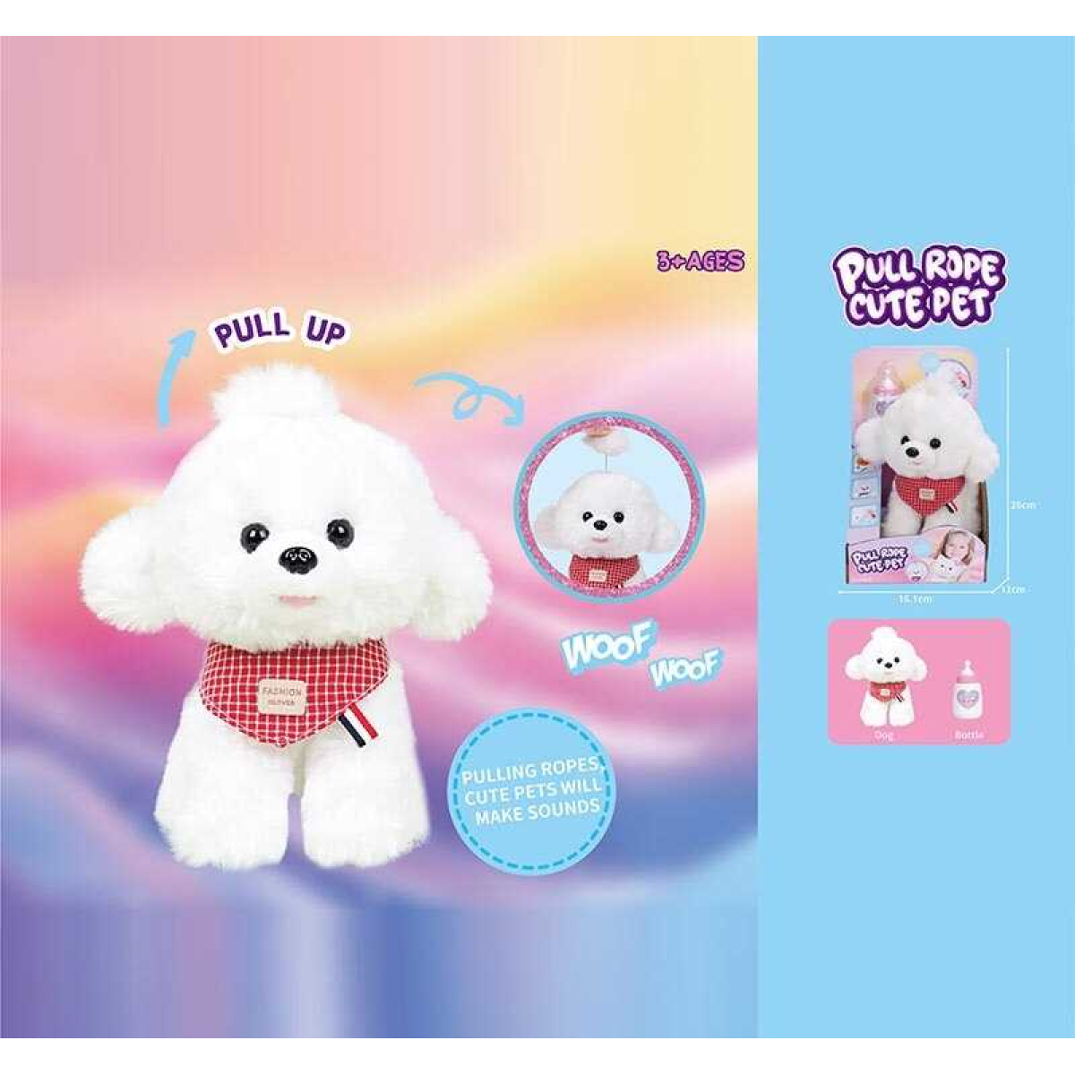 М’яка іграшка 933-169 E (24/2) “Собачка”, висота: 18 см, звуки, вібрує, пляшечка, в коробці