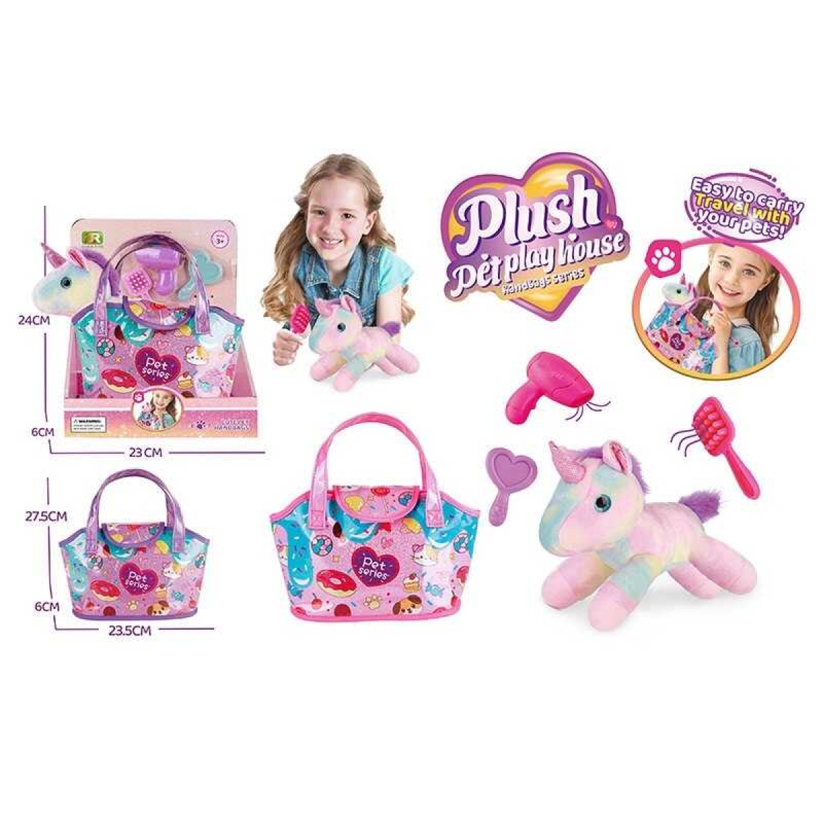 Тваринка в сумці DR 5141 (48/2) “Поні”, висота: 18 см, сумка-переноска, пластикові очі, аксесуари, в коробці
