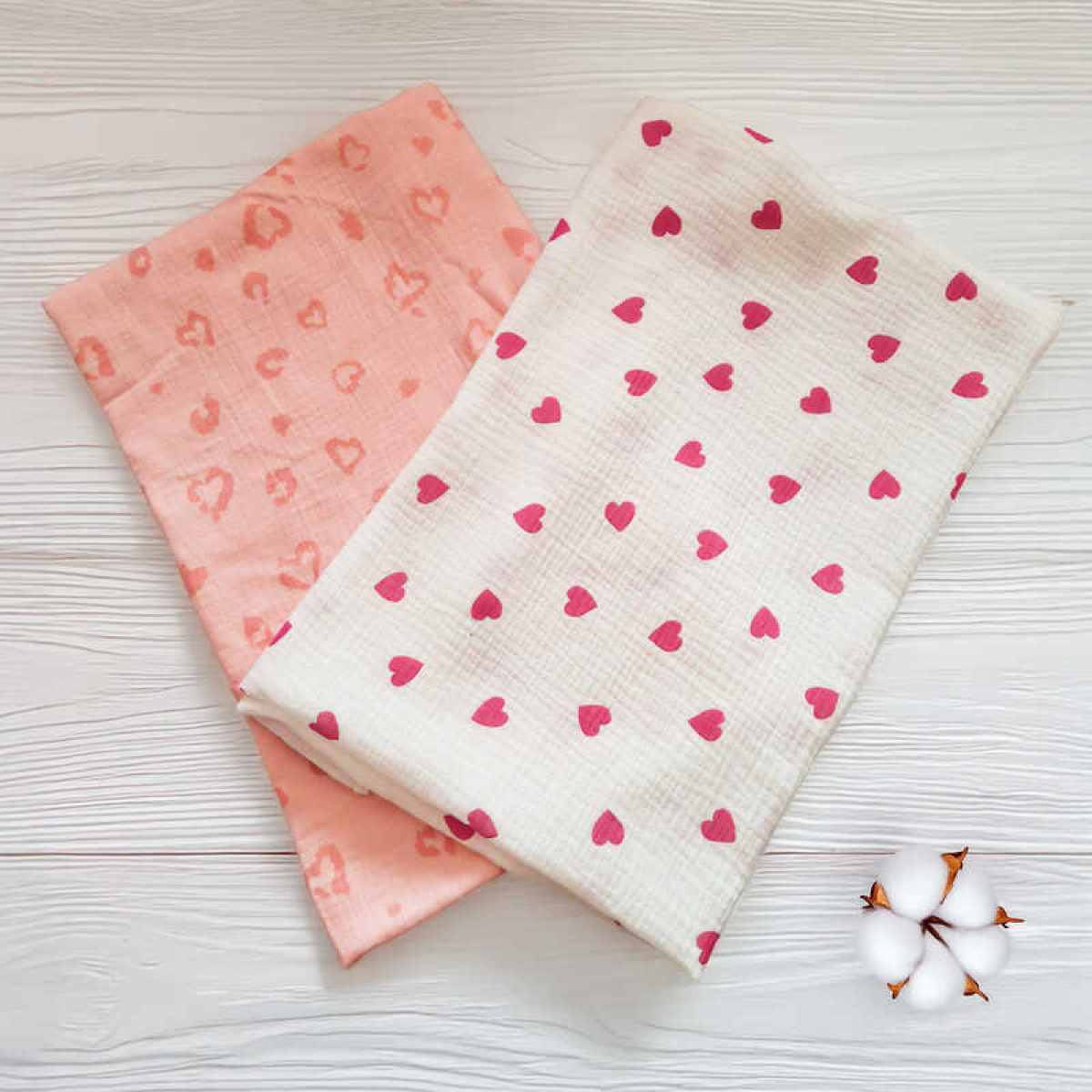 гр Комплект пелюшок “Серце“ 98706 (1) 2шт в комплекті, тканина МУСЛІН, розмір 100*70 см “Bimbo“