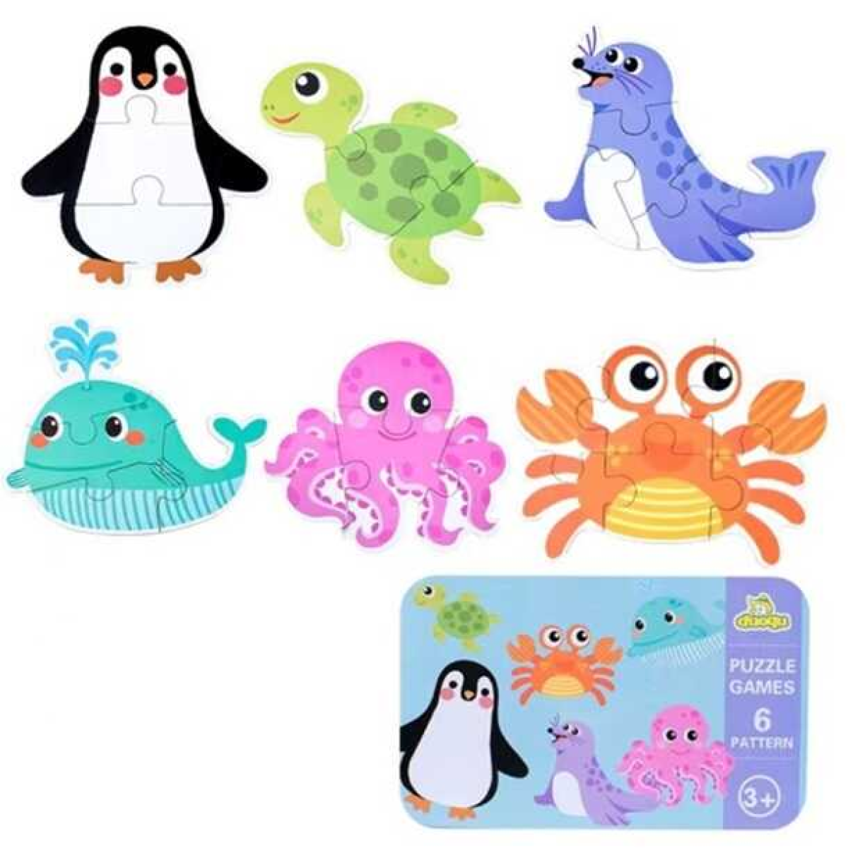 Набір пазлів С 58637 (60) “Морські мешканці“, 6 картинок, в коробці