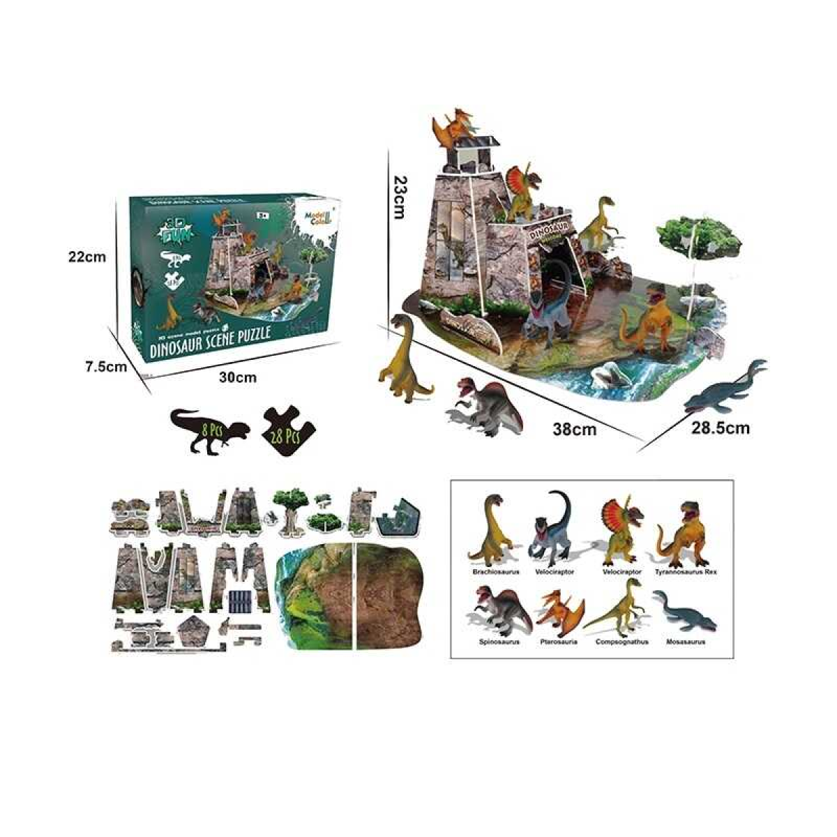 Пазли 3D 99888-14 E (24) 28 елементів, 8 фігурок динозаврів, в коробці