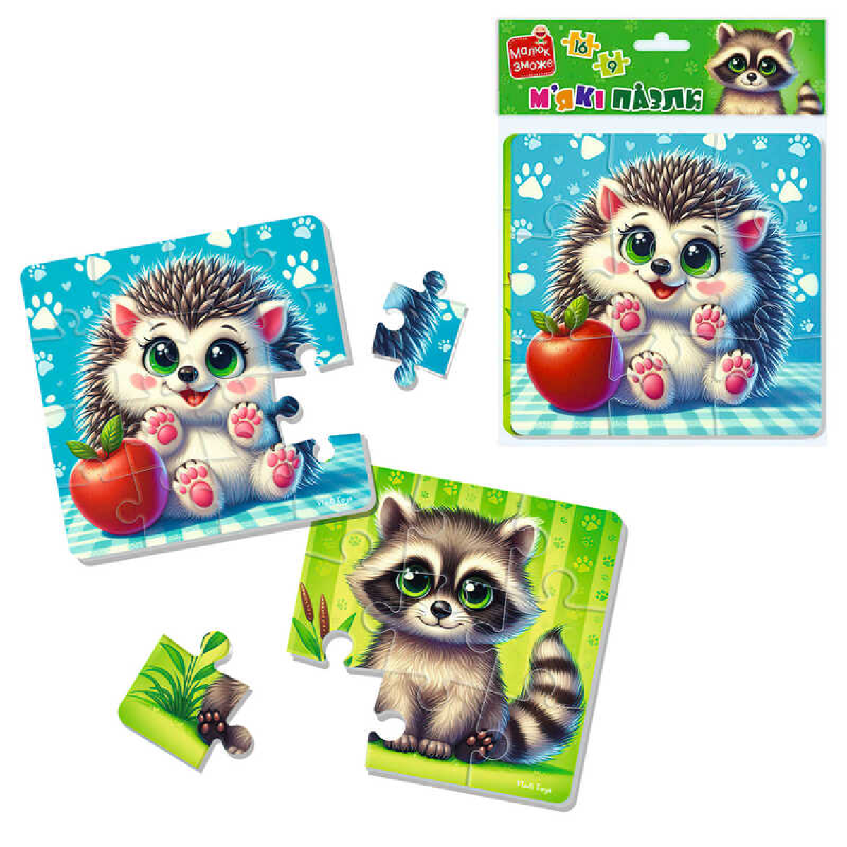 гр М’які пазли “Єнот та їжачок“ VT1102-36 (24) “Vladi Toys“, 2 пазли, 9 елементів та 16 елементів,в пакеті