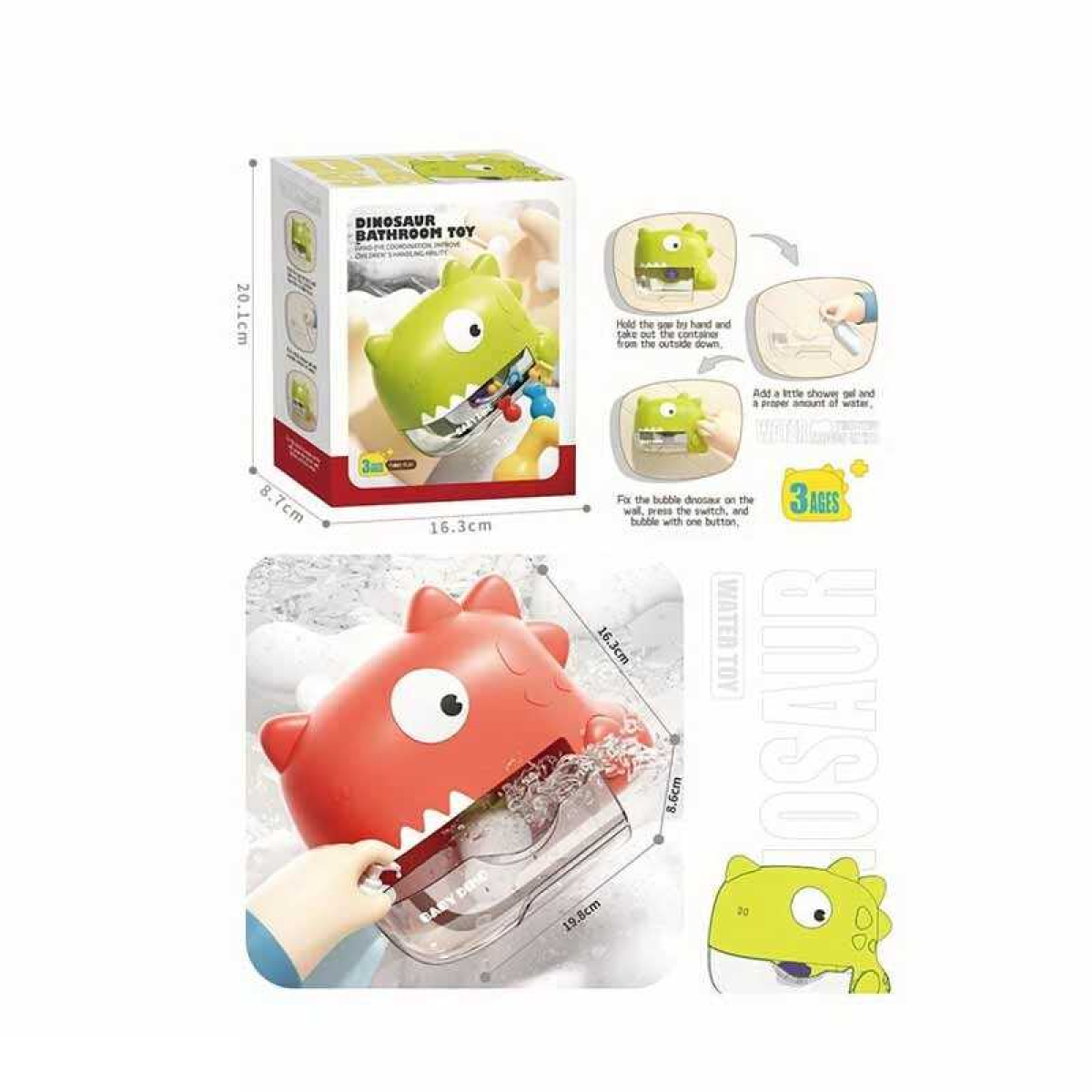 Піноутворювач для ванни X 18009 (48) “Динозавр”, від батарейок, на присосках, мелодія, 2 режими, в коробці