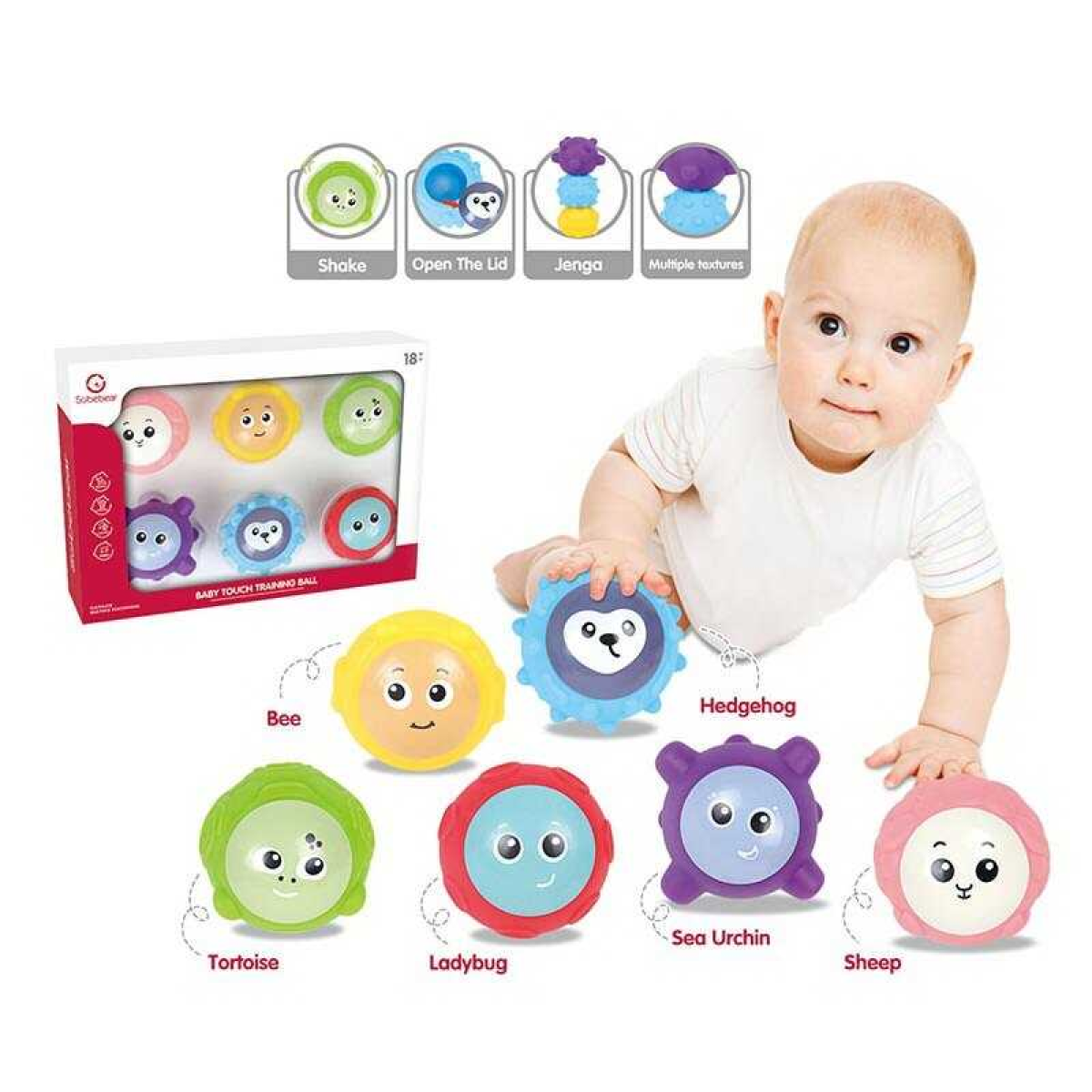 Сенсорні кульки YL 1304 (24) “Тваринки”, 6 штук, дзвінкий елемент, в коробці