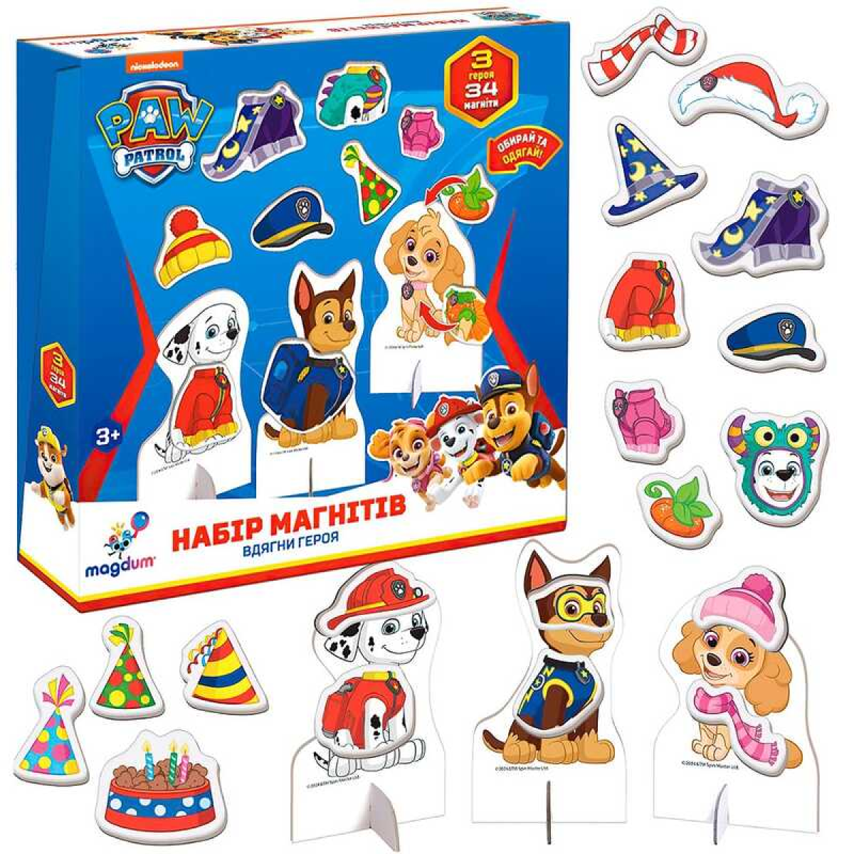 гр Набір магнітів ML 4034-13 “Щенячий патруль. Вдягни героя“ (24) “Magdum“ 3 героя, 34 магніти, в коробці