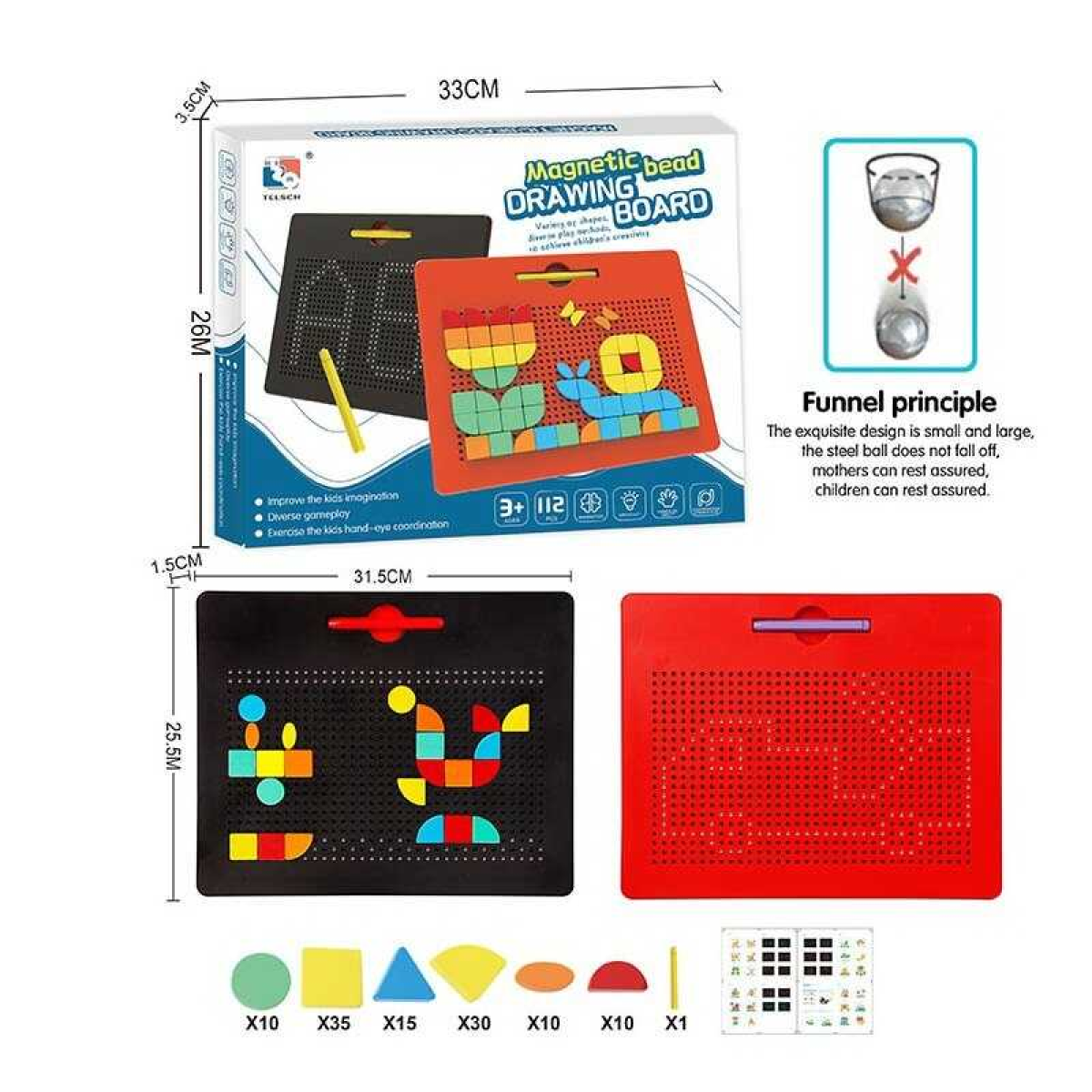 Дошка магнітна TSQ - 714 A (30) 2 види, магнітна гра, мозаїка, 112 деталей, в коробці