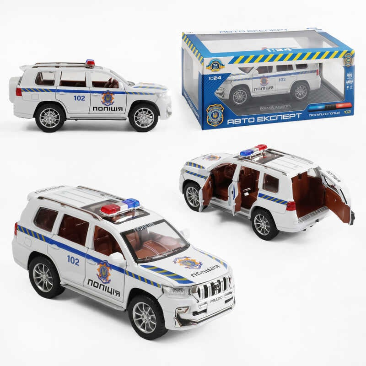 Машинка 41952 (24/2) “Авто Експерт“, “Поліція“, металопластикова, масштаб 1:24, інерція, 2 режими роботи, на батарейках, дверцята відчиняються, звуки, підсвічування фар, в коробці