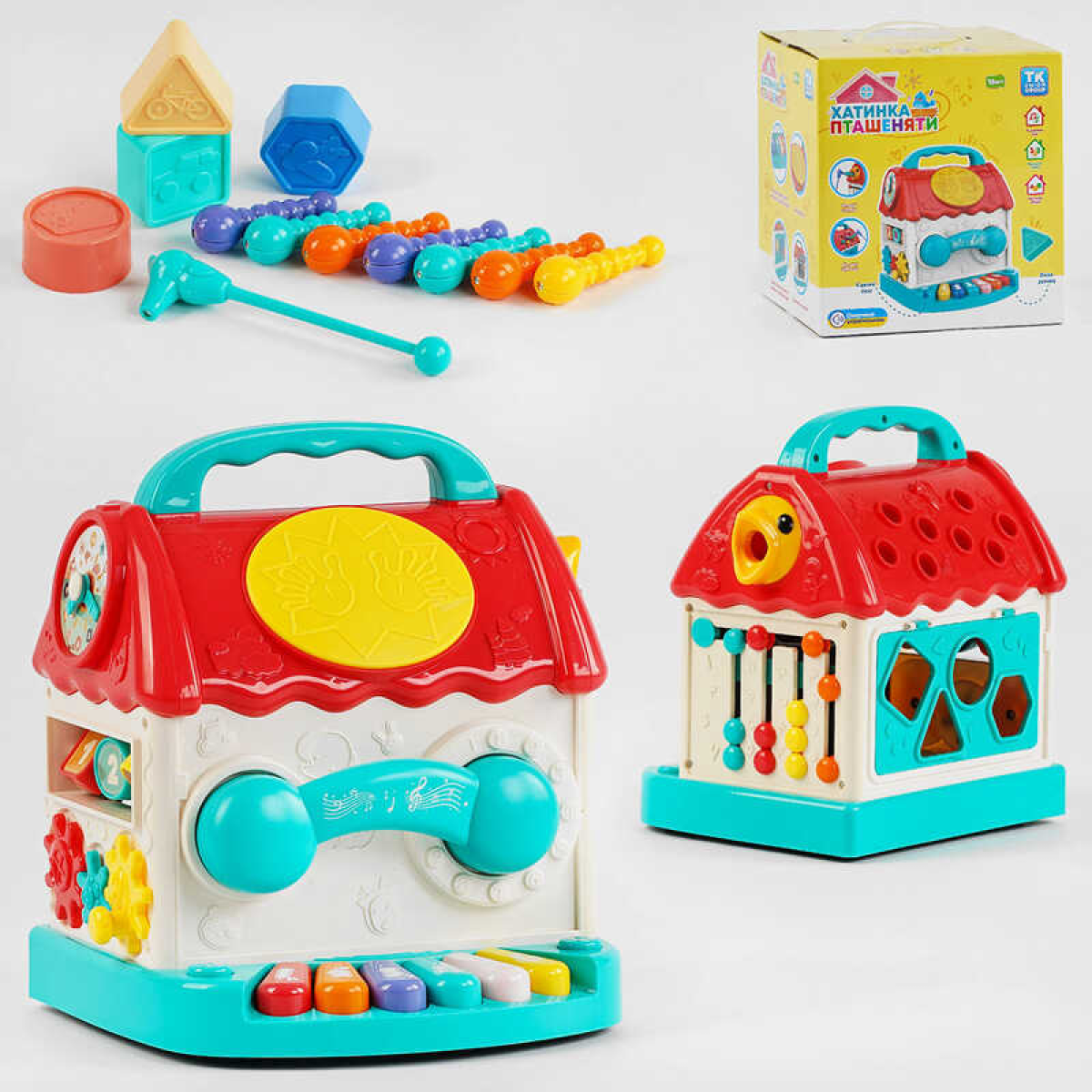 • Музичний будиночок 76263 (18) “TK Group“, ОЗВУЧУВАННЯ УКРАЇНСЬКОЮ МОВОЮ, магнітна гра з хробачками, 4 пісні, мелодії, фігури, цифри, піаніно, барабан, підсвічування, в коробці