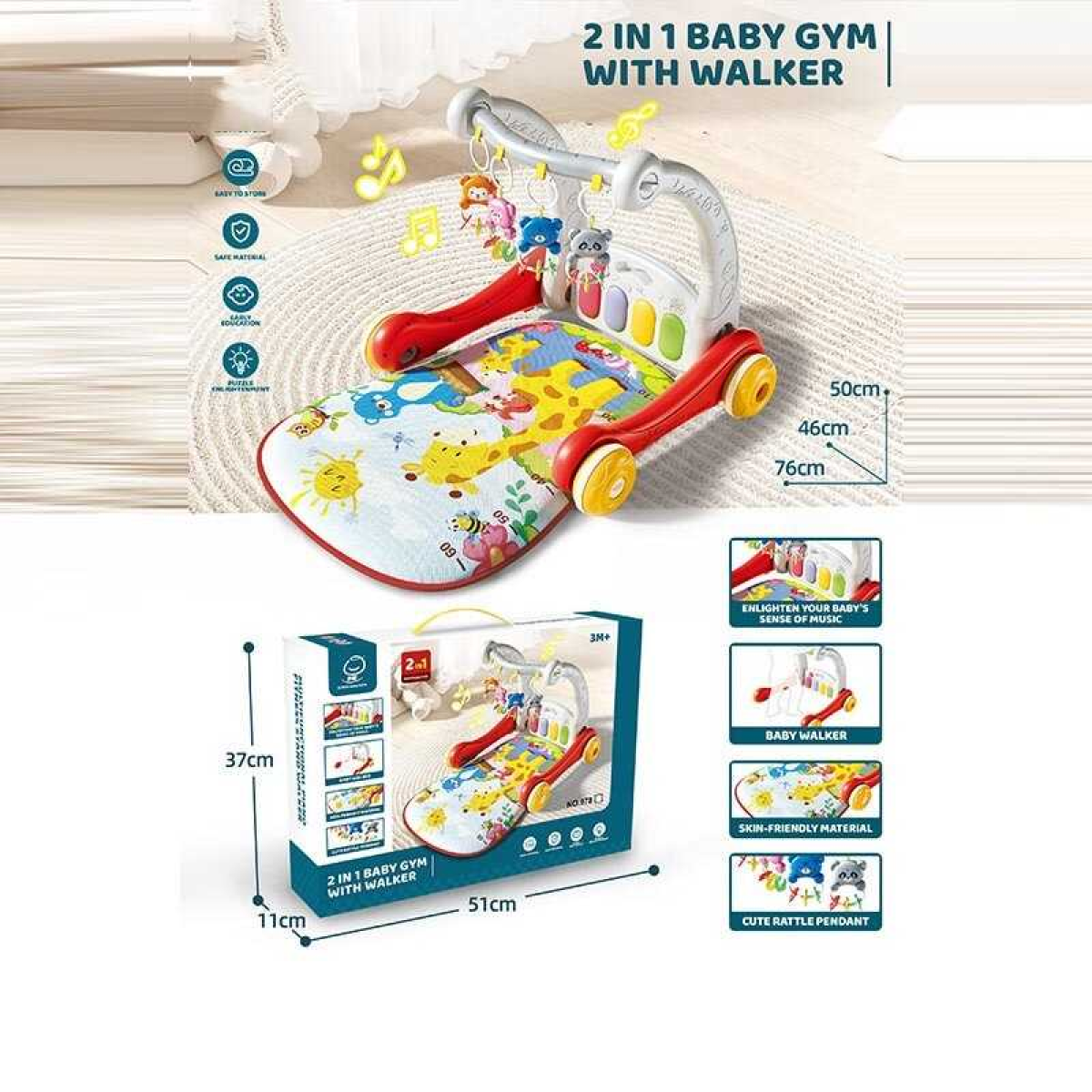 Ходунки 978 (16) 2 в 1, килимок, піаніно, ноти, звуки тварин, мелодії, підсвічування, 4 підвіски, брязкальця, в коробці