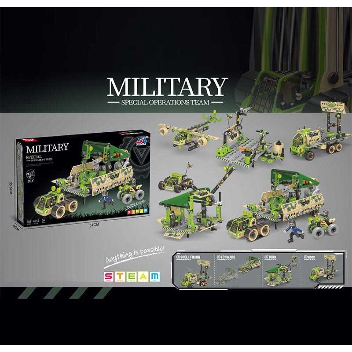 Конструктор J 6611 (12) 358 деталей, гумові шини, в коробці