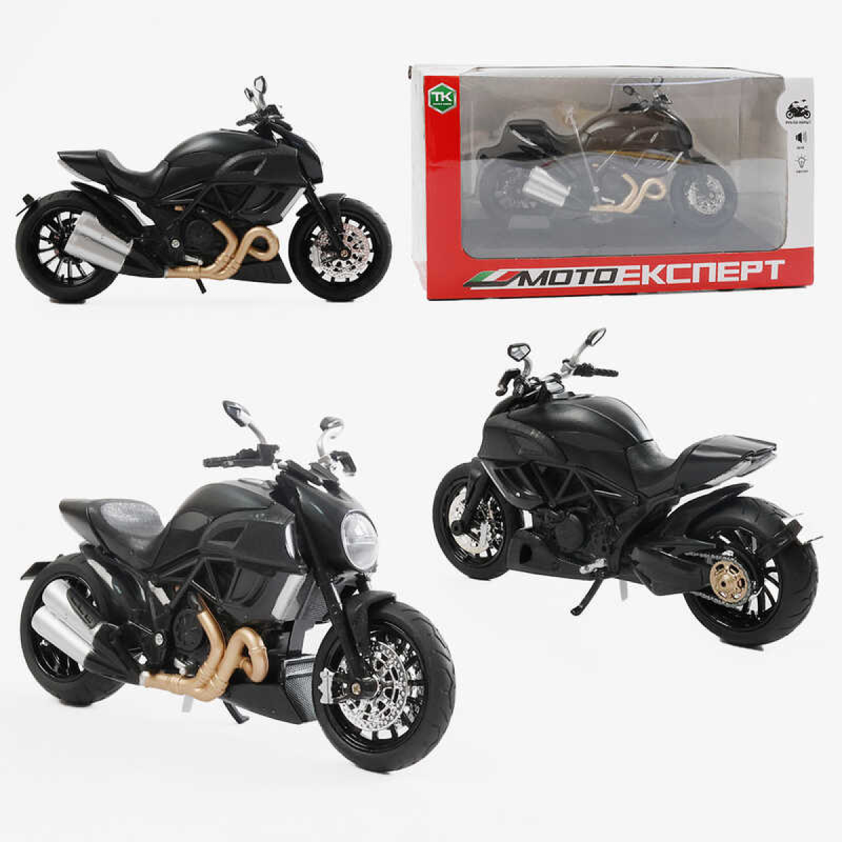 Мотоцикл BG 11-214 (48/2) “Мото Експерт“, металопластик, масштаб 1:12, прогумовані колеса, підсвічування, звук, амортизація, платформа, в коробці