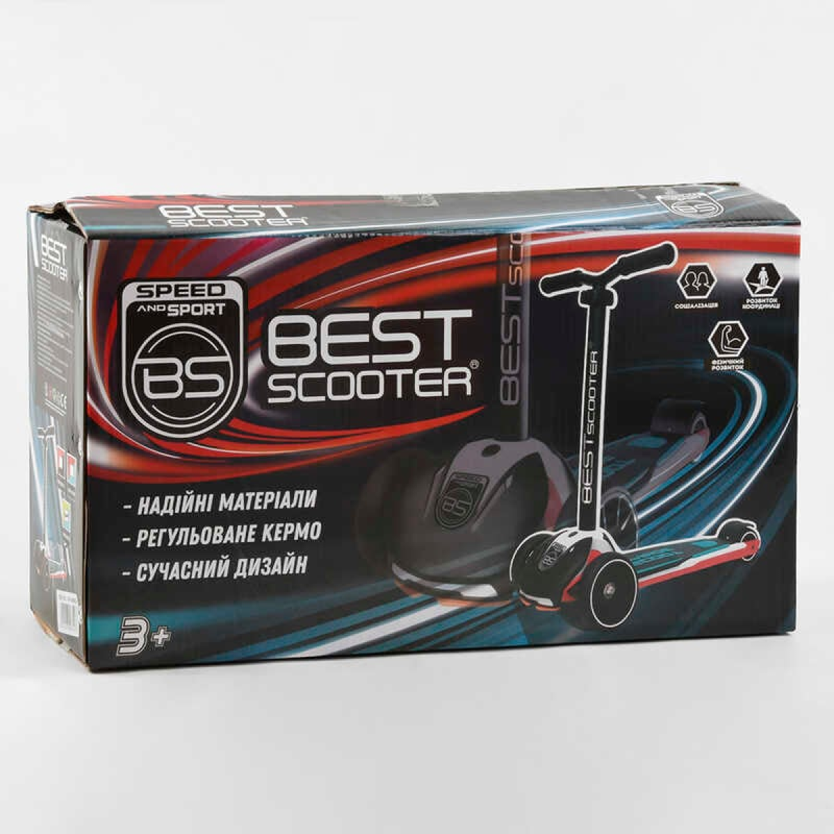 Самокат триколісний Best Scooter HW-00308 MAXI (6) знімне алюмінієве кермо, передні колеса PU 120х45мм, задні 80x50мм, зі світлом, в коробці
