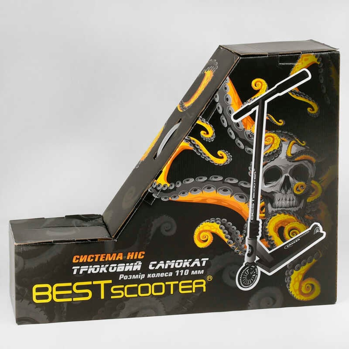 Самокат трюковий KR-82080 Best Scooter (4) “Kraken“ HIC-система, ПЕГИ, алюмінієвий диск та дека, АНОДОВАНИЙ, колеса PU 110 мм, ширина керма 58 см