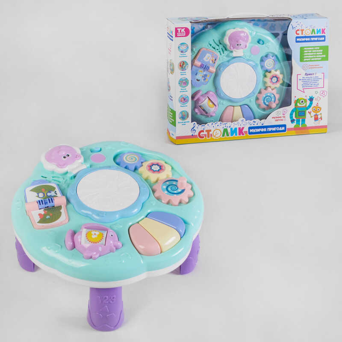 • Ігровий музичний столик 43285 (18) “TK Group“, ОЗВУЧУВАННЯ УКРАЇНСЬКОЮ МОВОЮ, 3в1, підсвічування, мелодії, 2 пісеньки, звуки, в коробці