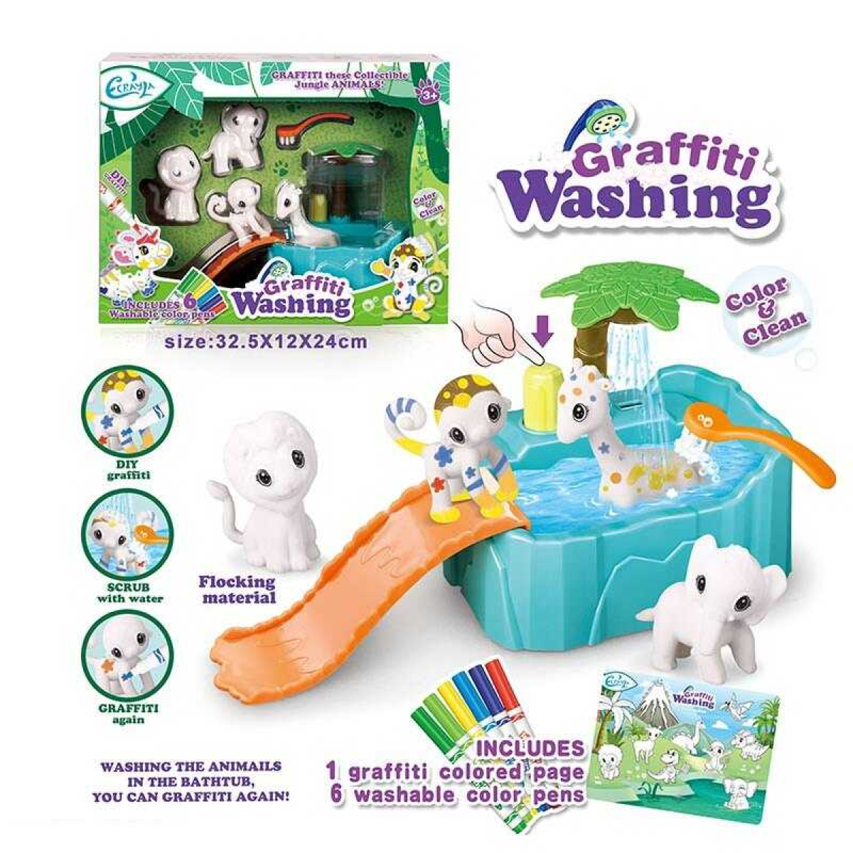 Набір для творчості 805 (24) 4 флоксові фігурки тварин, помпова подача води, 6 кольорових фломастерів, ванночка з гіркою, щіточка, в коробці