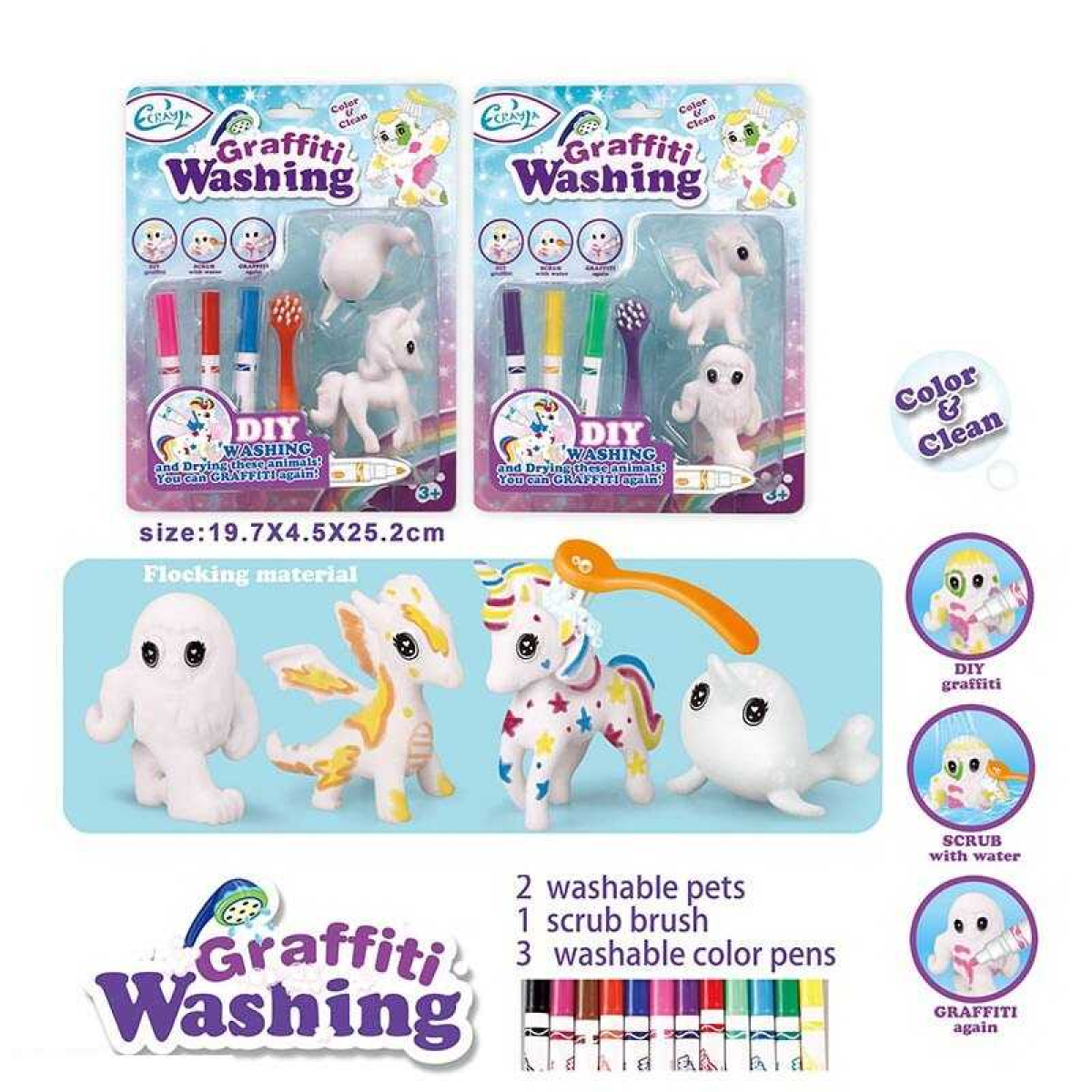 Набір для творчості 814 (128/2) 2 види, 2 флоксові фігурки тварин, 3 кольорові фломастери, щіточка, на листі