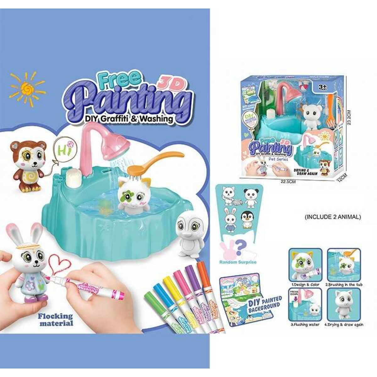 Набір для творчості 822 (48/2) 2 флоксові фігурки тварин, помпова подача води, 6 кольорових фломастерів, ванночка, щіточка, в коробці