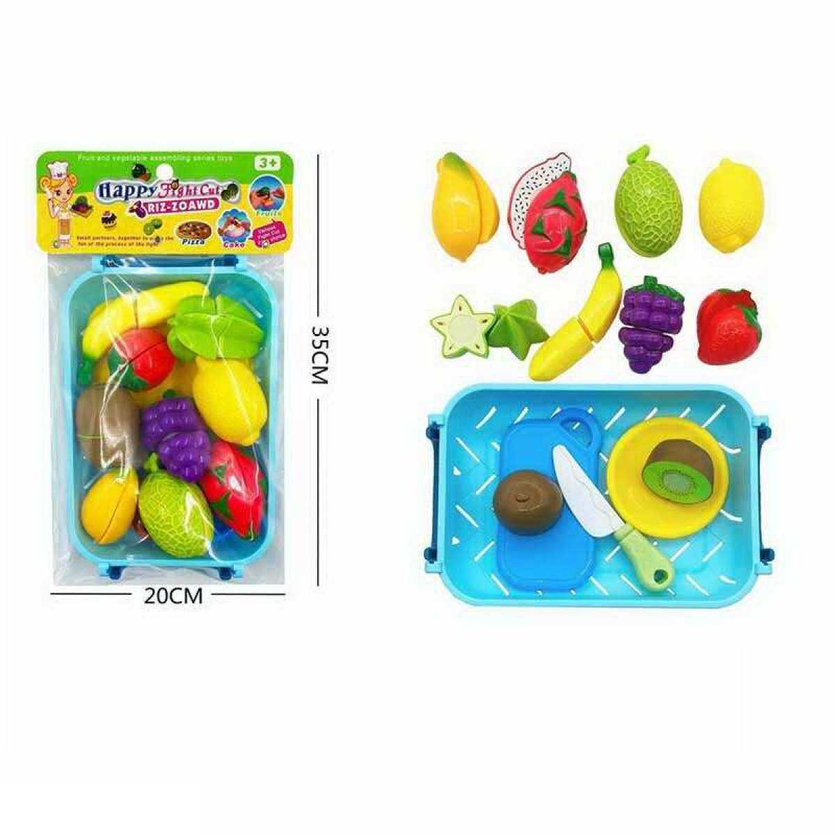 Набір продуктів 174 A2 (72/2) 9 фруктів та ягід на липучках, таця, дошка для нарізання, тарілка, ніж в пакеті