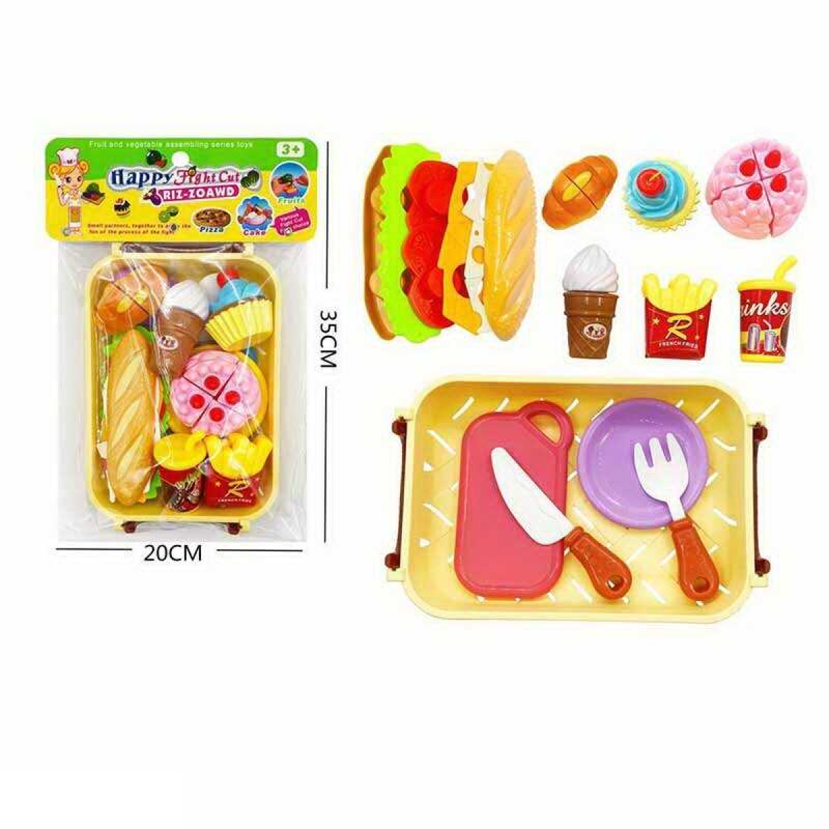 Набір продуктів 174 A5 (72/2) солодощі та випічка на липучках, картопля фрі, бутерброд, кошик, виделка, ніж, тарілка і дошка, в пакеті