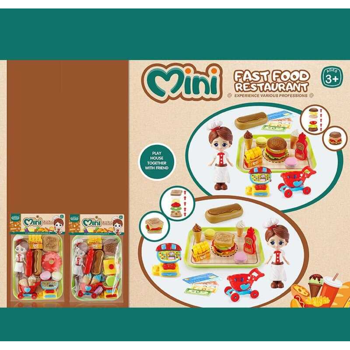 Набір продуктів 623-231 (96/2) 2 види, 12 елементів, ресторан швидкого харчування, ігрова фігурка, каса, візок, у пакеті