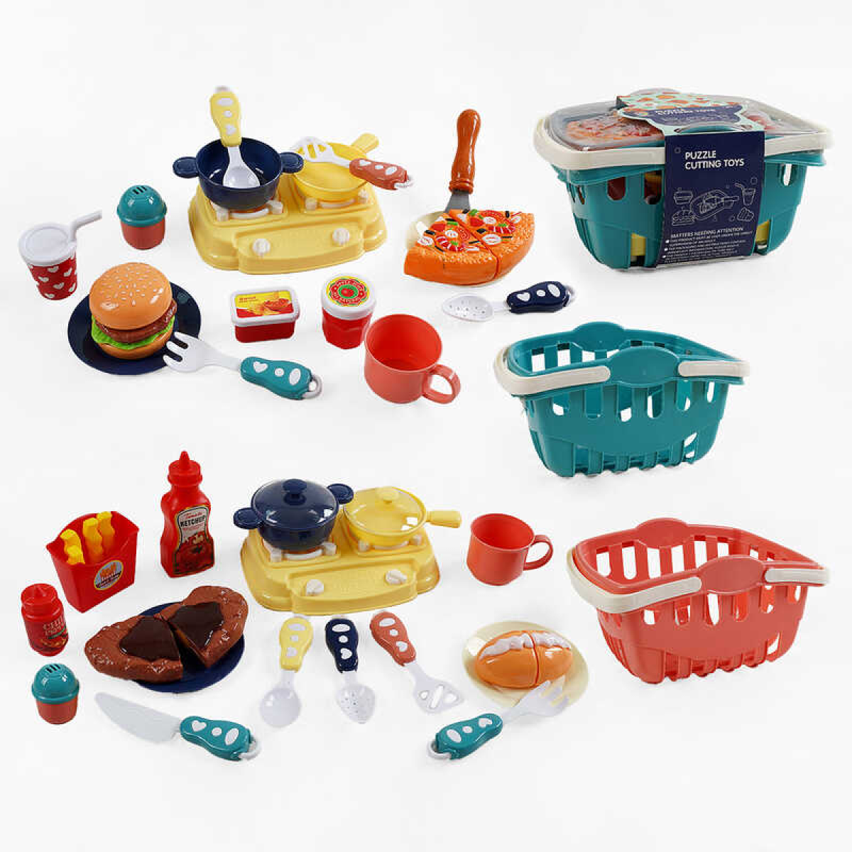 Набір продуктів 848-226 (48/2) 2 види, посуд, ніж, плита, продукти на липучках, в кошику