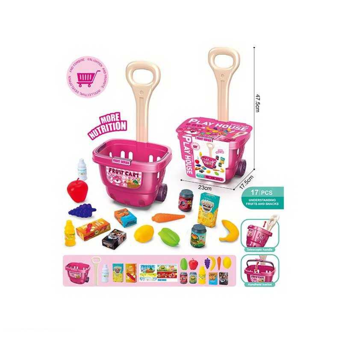 Набір продуктів 9239 (40/2) 17 елементів, 2в1: кошик/візочок, телескопічна ручка, висота 48см, фрукти, баночки з напоями, коробочки зі смаколиками