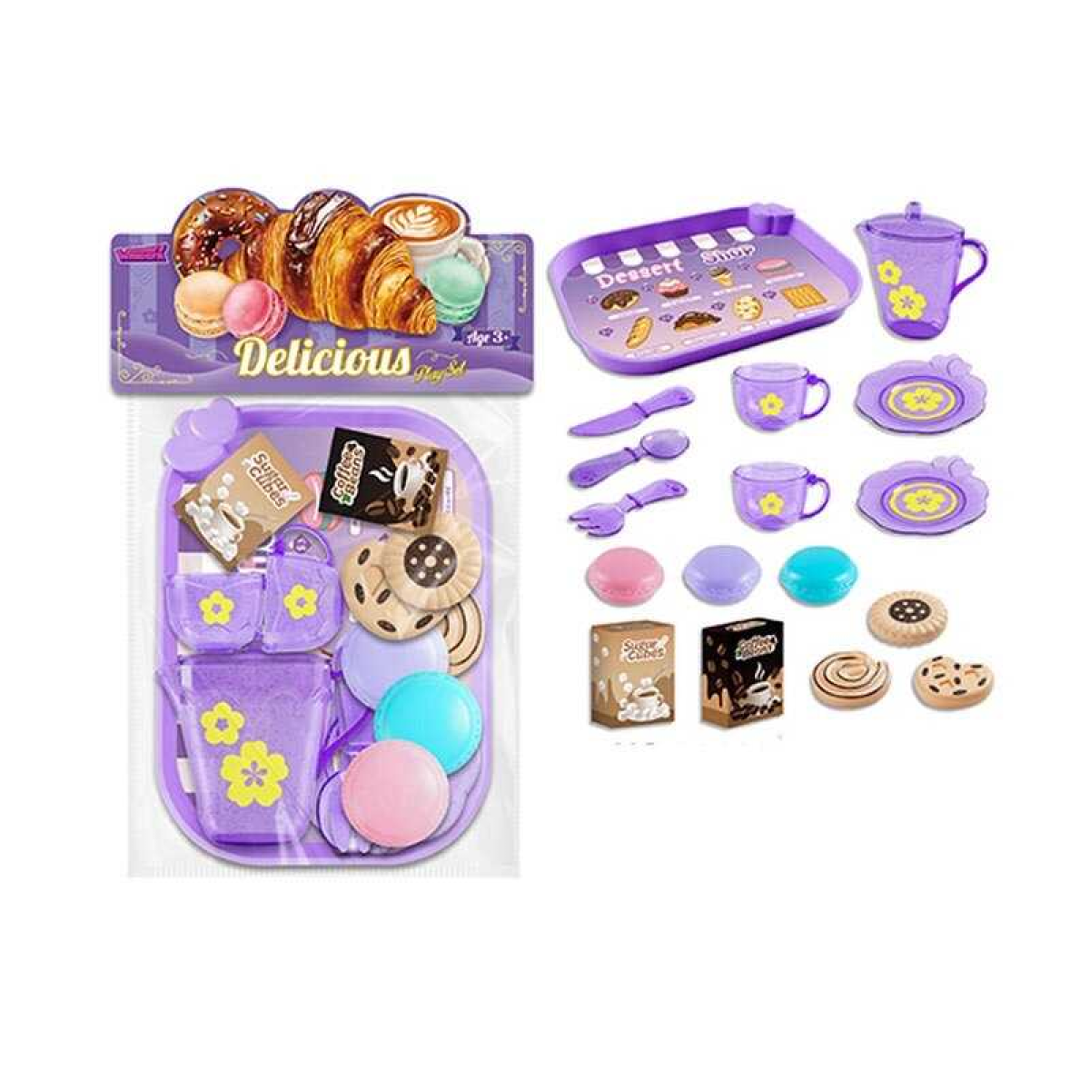 Набір продуктів 99003 (120/2) таця, 2 чашки, 2 блюдця, чайничок, ніж, ложка, вилка, печиво, коробочки з кавою і цукром, в пакеті