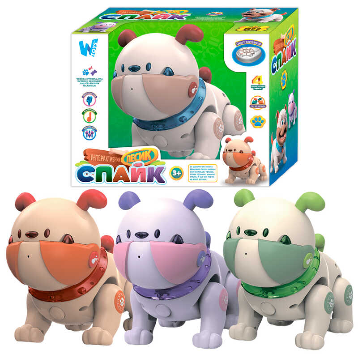 Інтерактивний пес Спайк на р/к 68068 (24) “WToys”, 3 кольори, ОЗВУЧУВАННЯ УКРАЇНСЬКОЮ МОВОЮ, сенсорний, мелодії, підсвічування, запис голосу, пульт керування, інструкція, в коробці, МІКС ВИДІВ