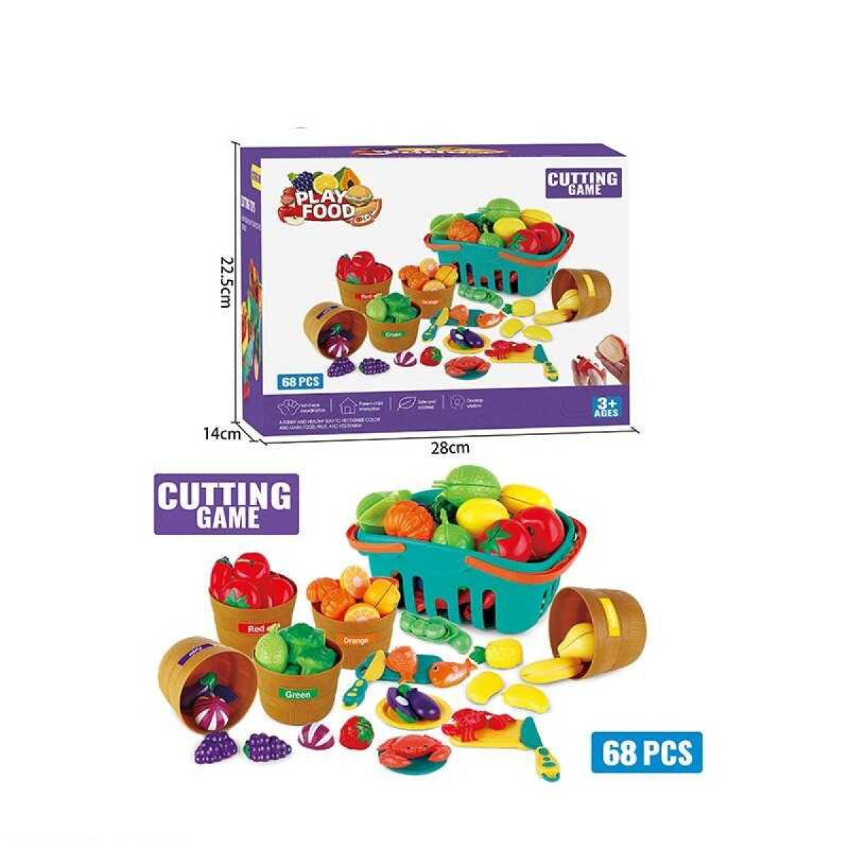 Продукти на липучках SC 068 (16) 68 елементів, сортер за кольорами та видами продуктів, 2 ножі, 2 тарілки, 2 обробні дошки, наліпки, в коробці