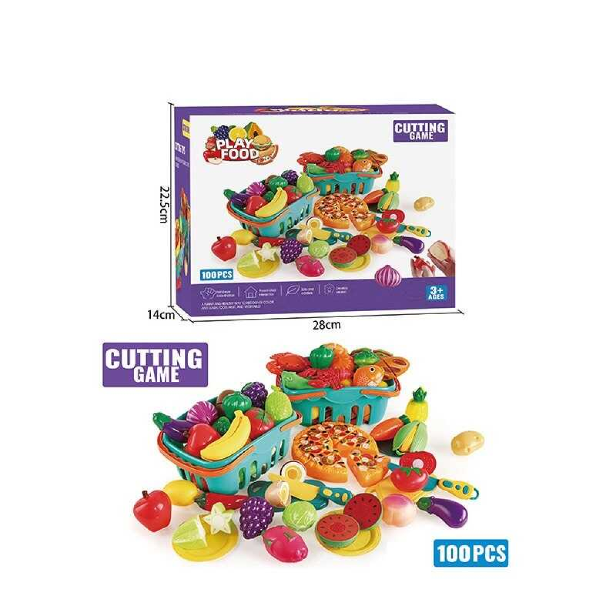 Продукти на липучках SC 100 (16) 100 елементів, 2 кошики, 4 ножі, 8 тарілок, 4 дощечки, в коробці