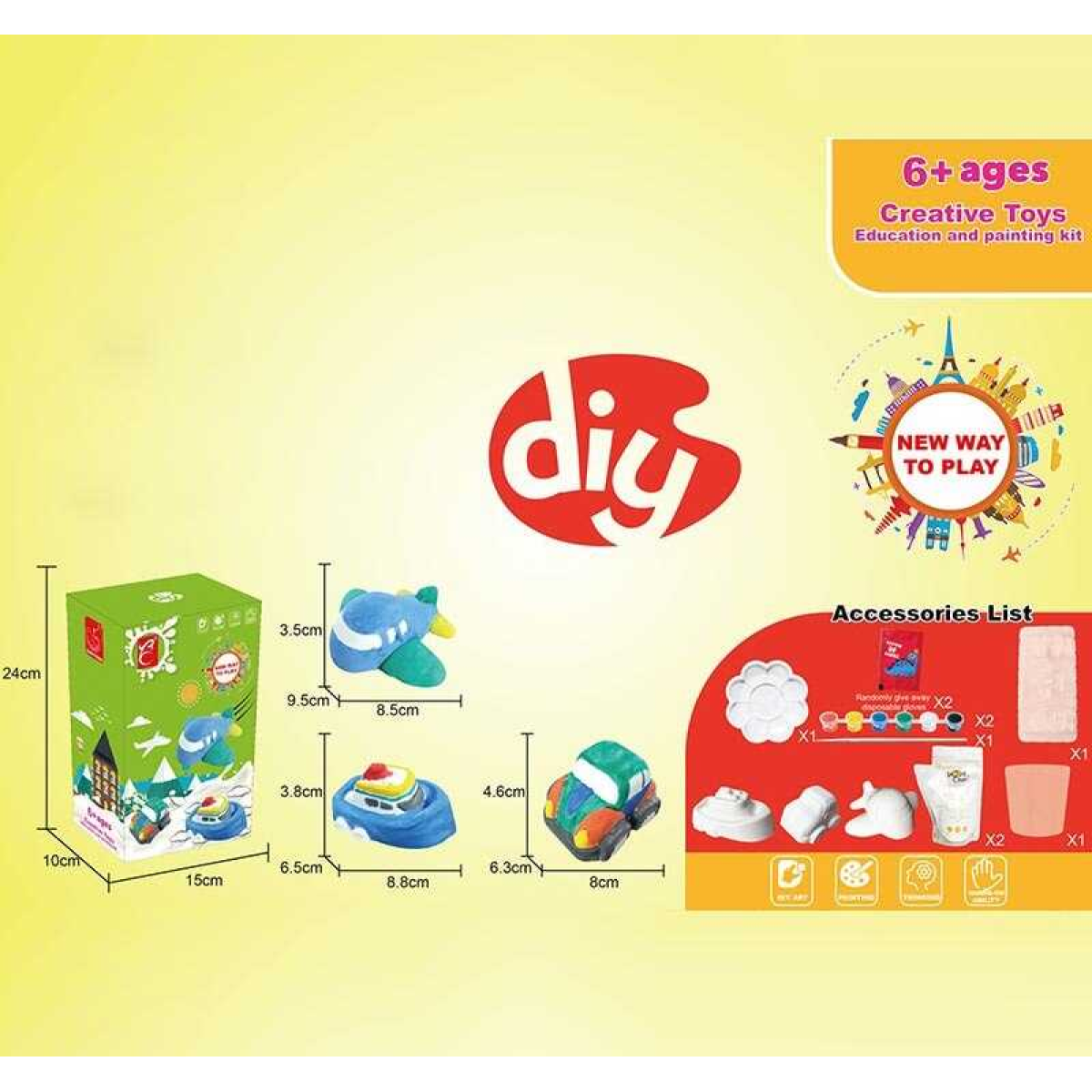 Розмальовка гіпсова 5159 (36/2) “Транспорт”, форми, фарби, гіпс, палітра, в коробці