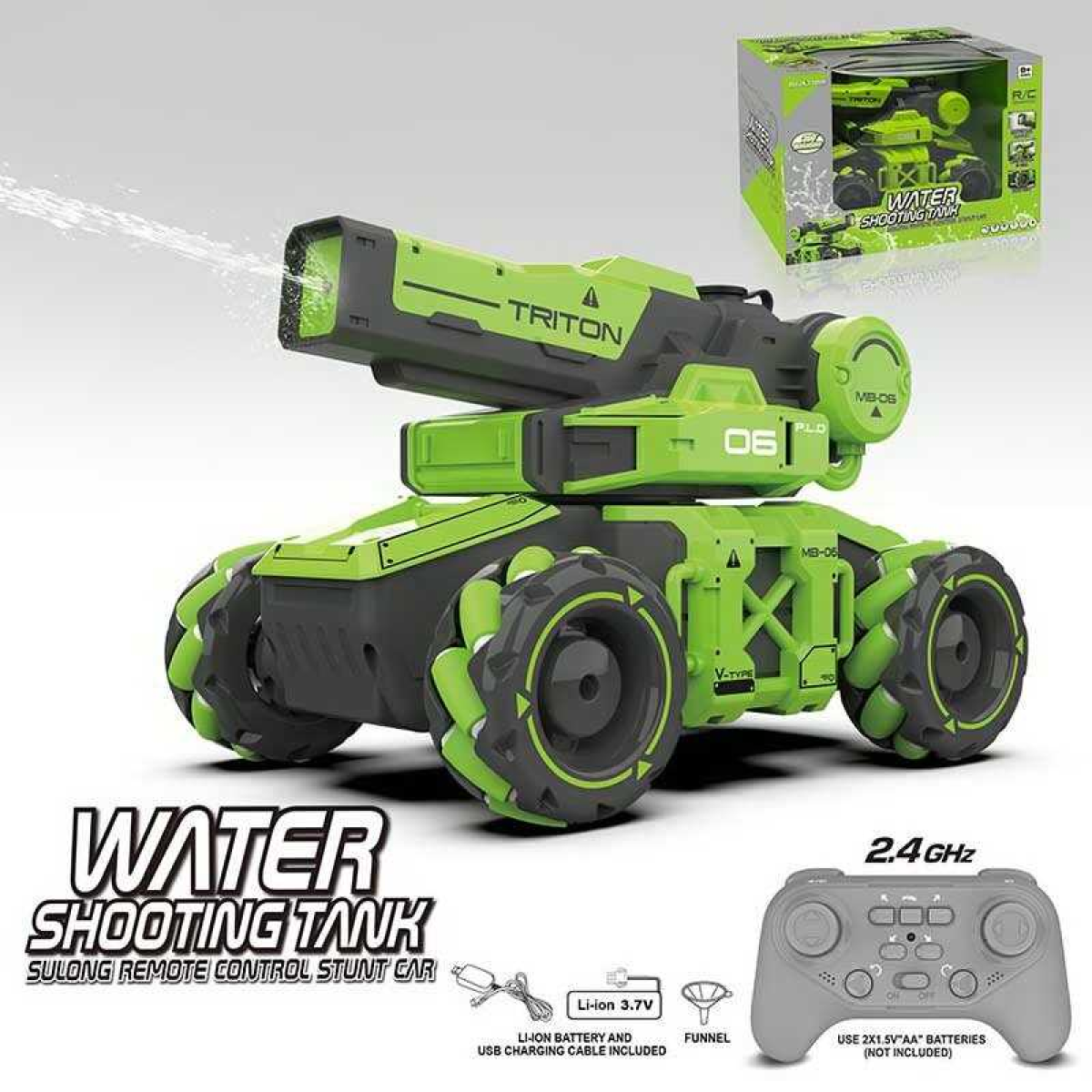 Танк на радіокеруванні SL 8014 A (18) стріляє водою, обертання на 360°, ковзання, пульт 2,4 GHz, акум. 3.7V, USB-кабель, роликові колеса, тріскачка, лійка, в коробці