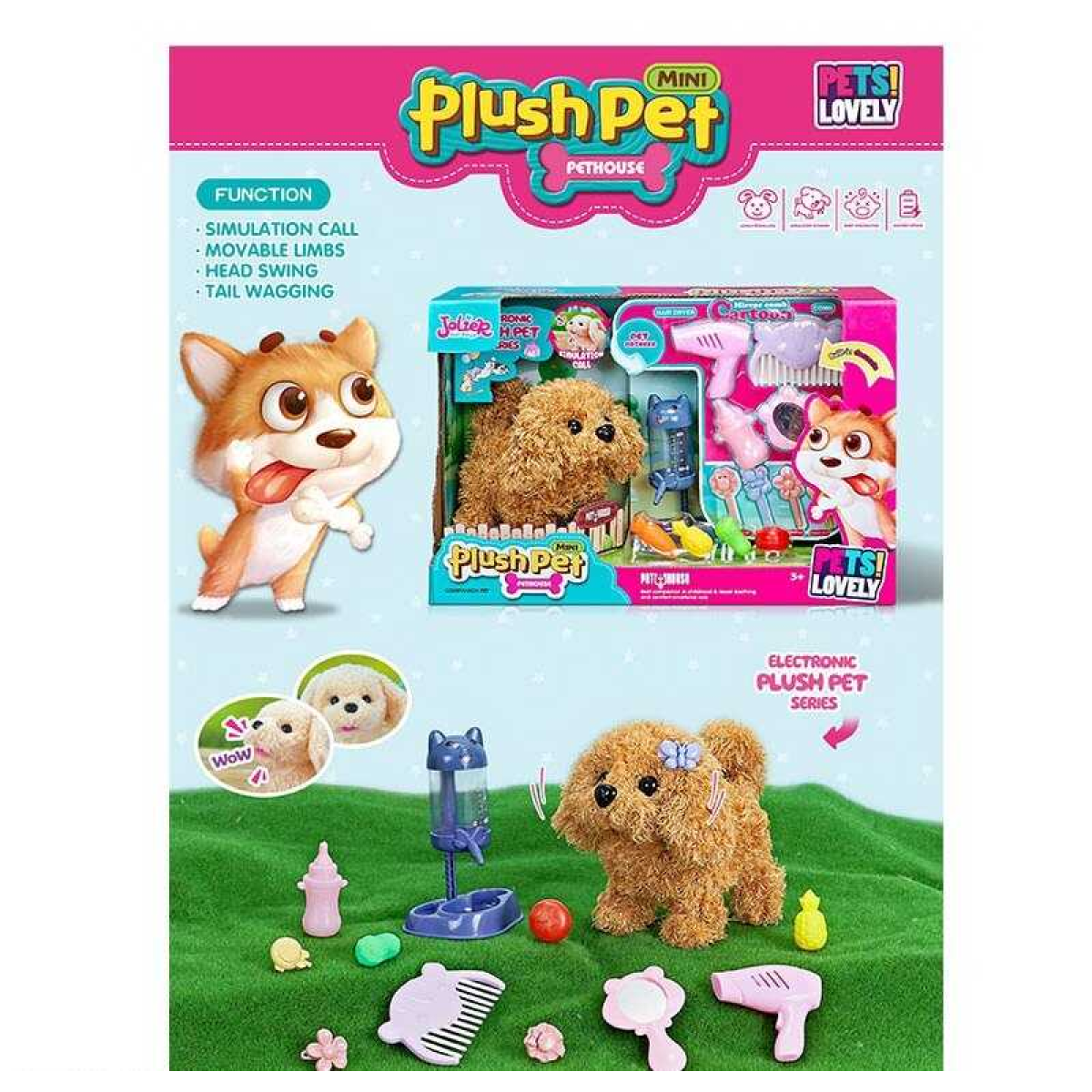Улюбленець MC 1028 (18) “Песик“, ходить, гавкає, рухає хвостом і головою, поїлка, гребінець, фен, пляшечка, в коробці