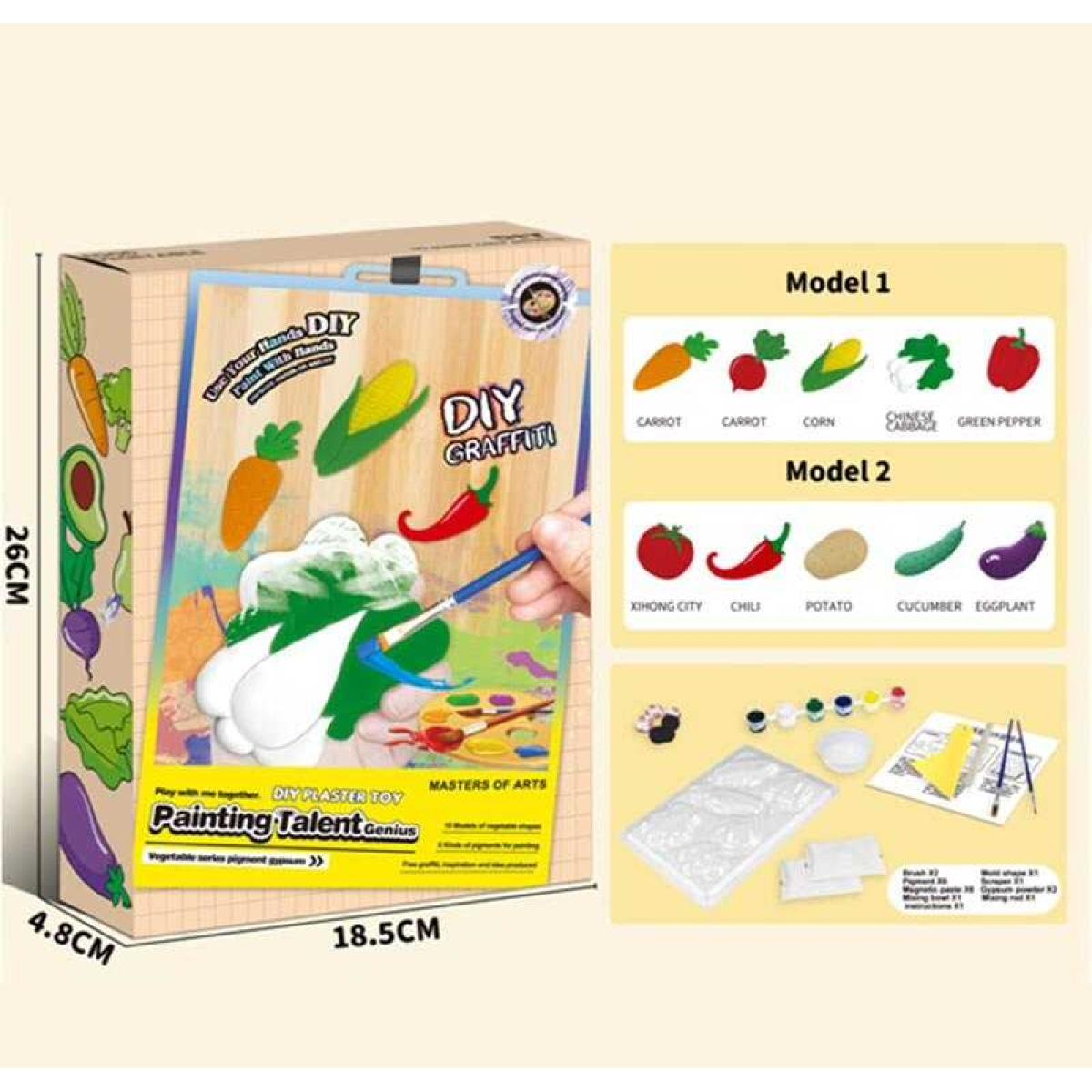 Гіпсова розмальовка ZY 105 (60) магнітні наліпки, молди, акрилові фарби, гіпс, пензлики, шпатель, в коробці
