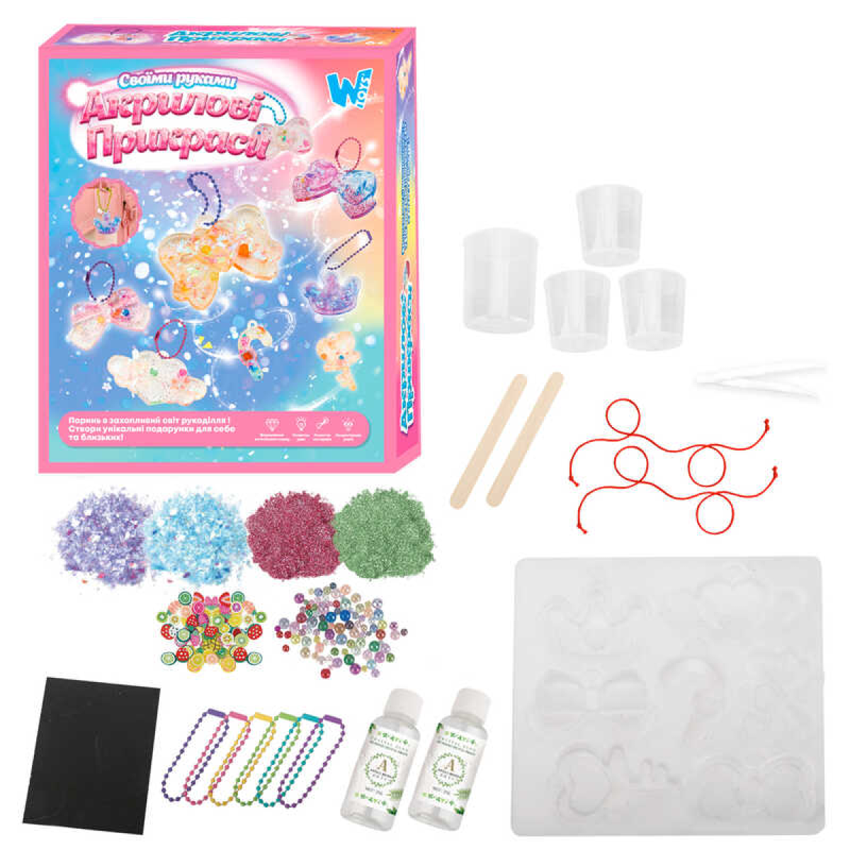 Акрилові прикраси 41029 / 68656 (96) “WToys“, 2 види, епоксидний клей, активатор, силіконовий молд, прикраси, ланцюжки, в коробці