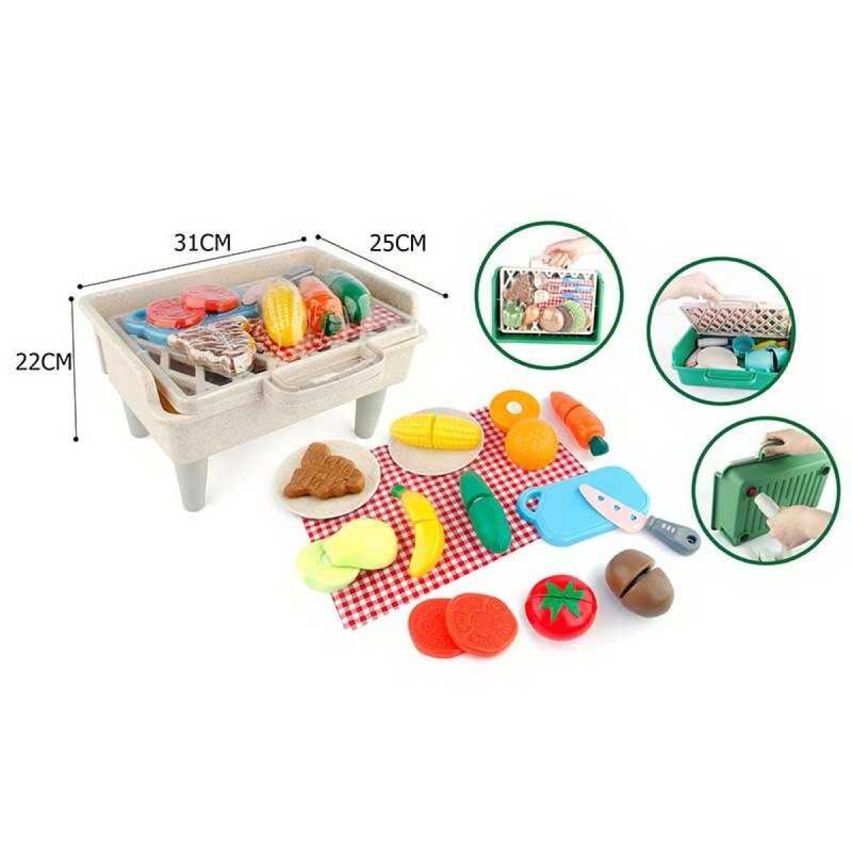 Барбекю 2026 ED-E (36) овочі, фрукти, на липучках, посуд, ніж, скатертина, мангал, у валізі