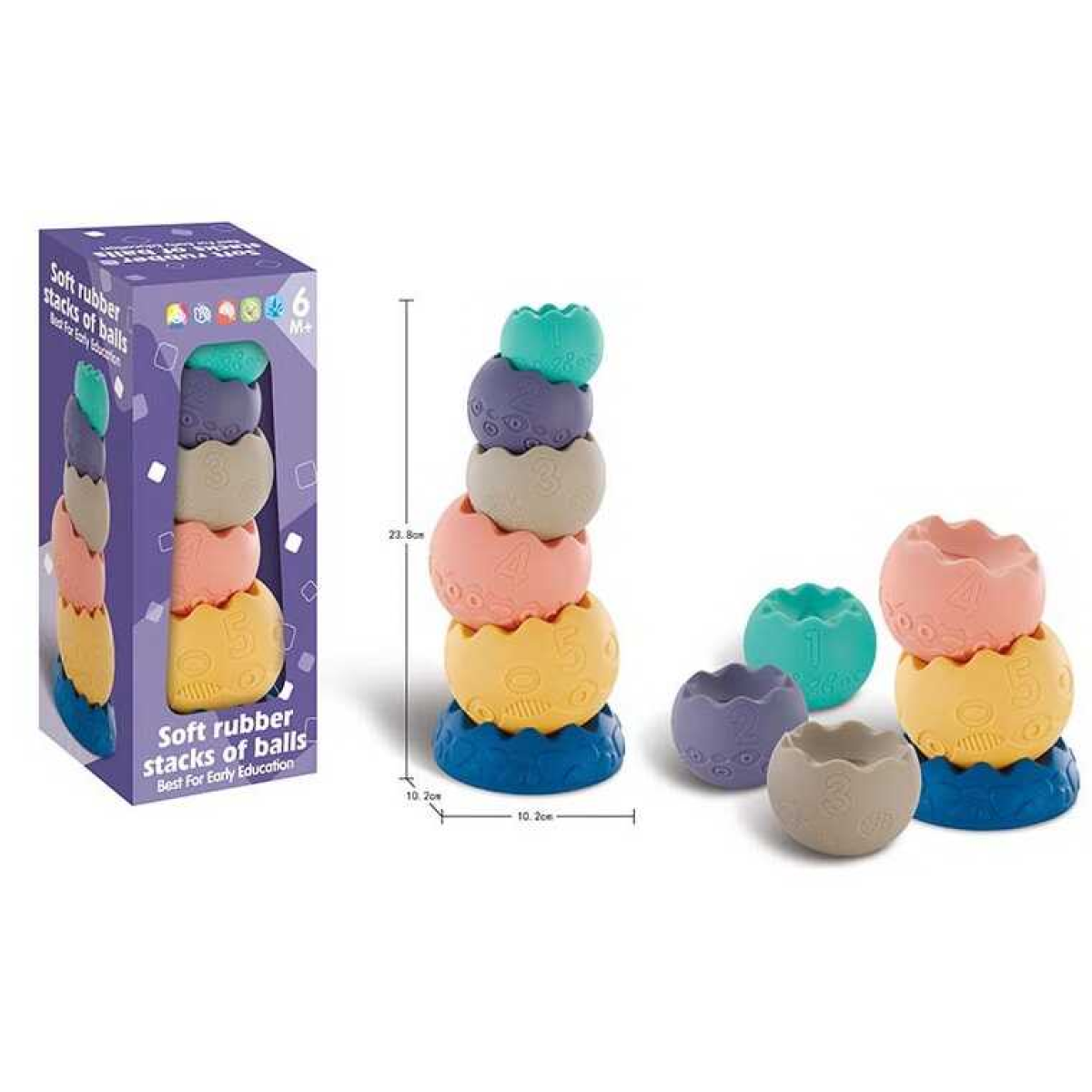Пірамідка сенсорна 1049 (60/2) висота 24 см, 6 елементів, тактильна, в коробці