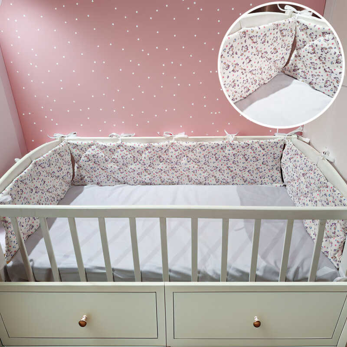 гр Бортик у ліжко “Єдиноріг“ 51071 (1) стьобані на три сторони, тканина СИТЕЦЬ, розмір 120*30 см “Bimbo“