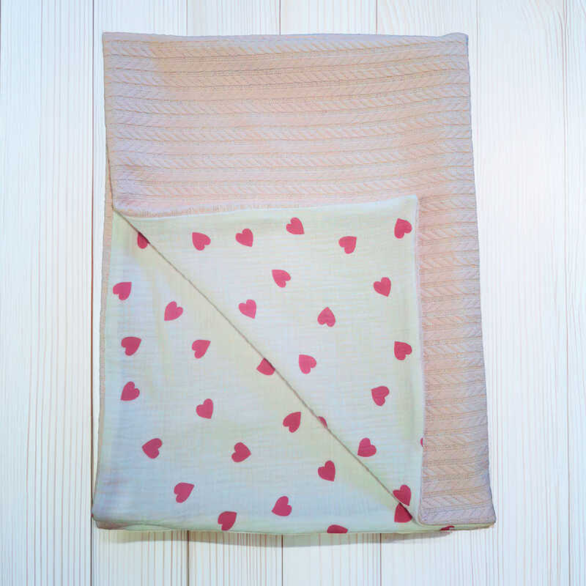 гр Плед дитячий для немовлят “Серце“ 99877 (1) в’язане полотно, МУСЛІН, розмір 100*80 см “Bimbo“