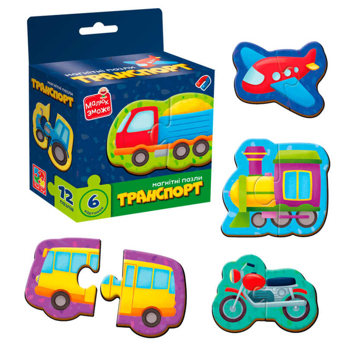 гр Магнітні пазли “Транспорт“ VT1733-02 (20) “Vladi Toys“, 6 картинок (12 деталей), в коробці