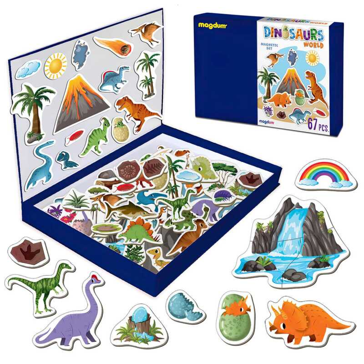 гр Набір магнітів “Світ динозаврів“ ML4032-04 EN (10) “Magdum“, 67 магнітів, магнітна дошка, в коробці