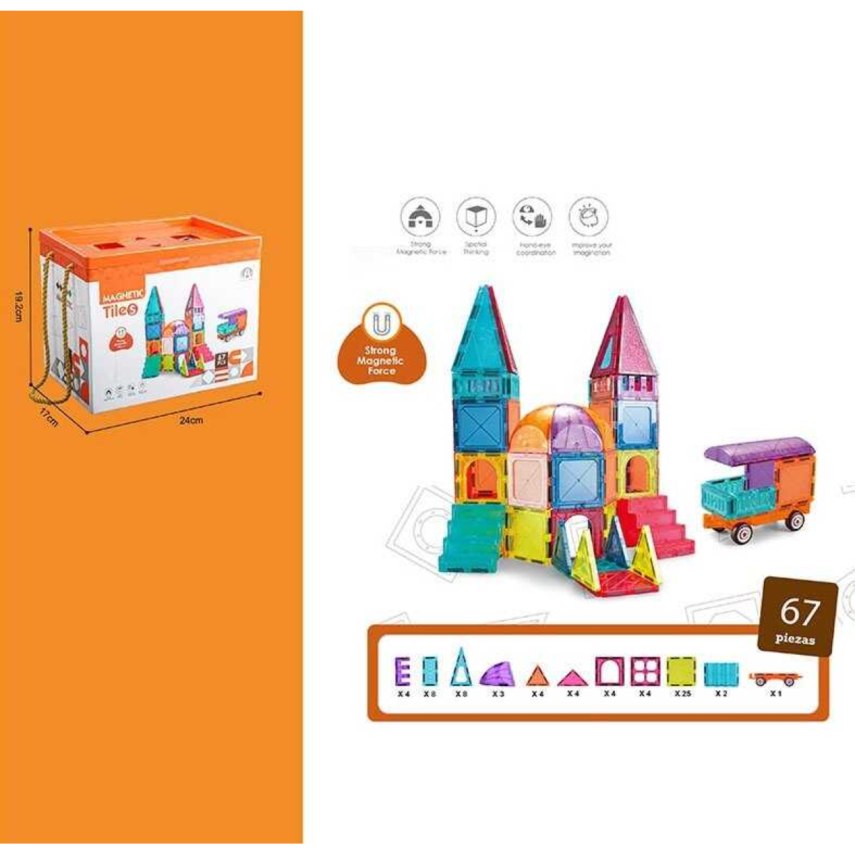 • Магнітний конструктор CH 1132 (8) “Будинок”, машинка, 67 деталей, в коробці