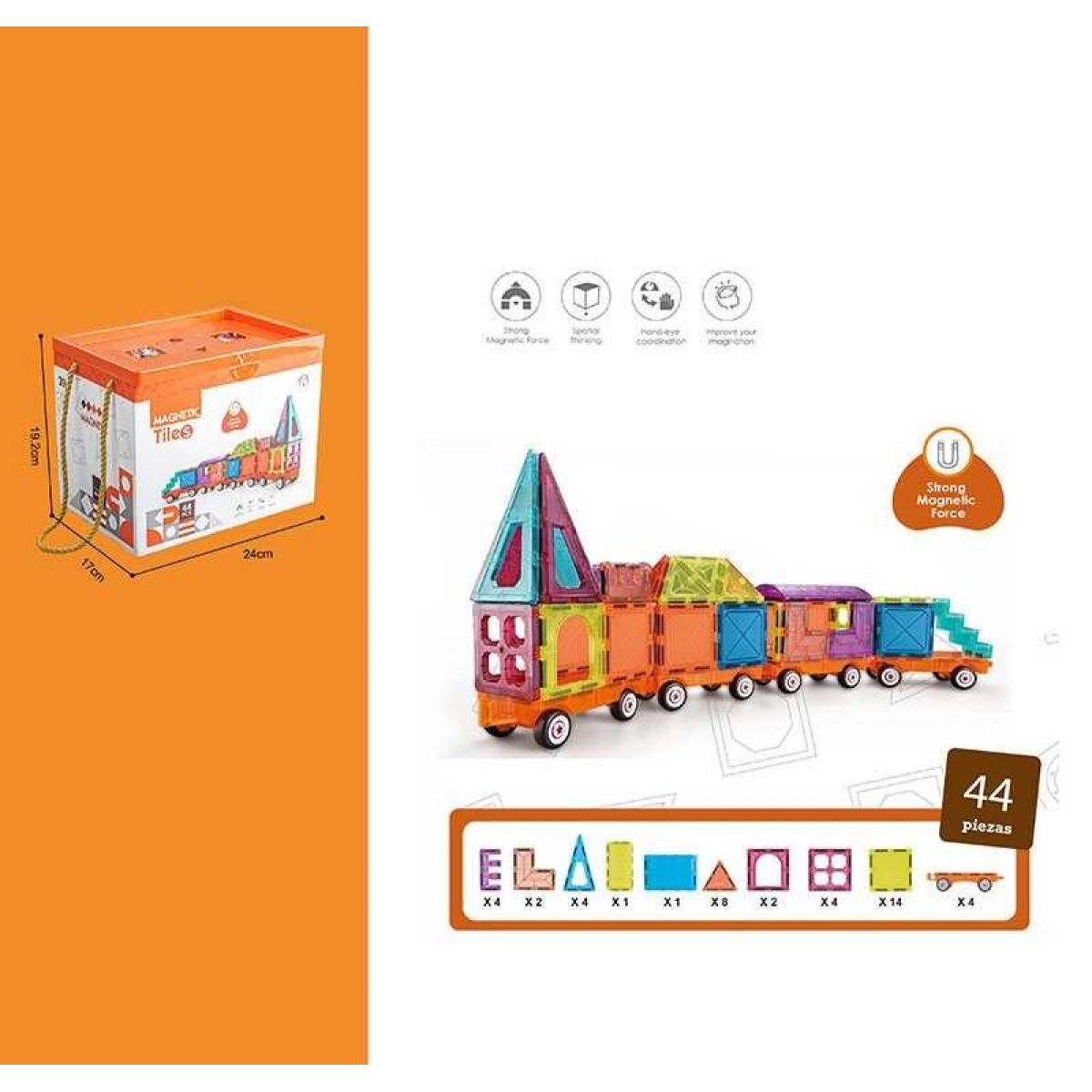 Магнітний конструктор CH 1134 (12) 44 деталі, платформи з колесами, інструкція, в коробці