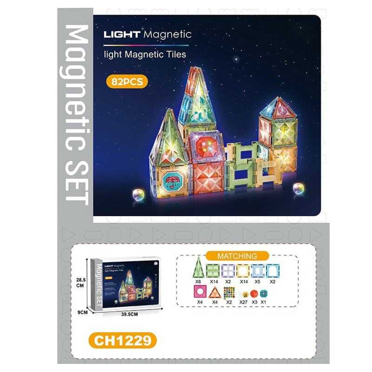 • Магнітний конструктор CH 1229 (12) 82 деталі,  підсвічування, наліпки, в коробці