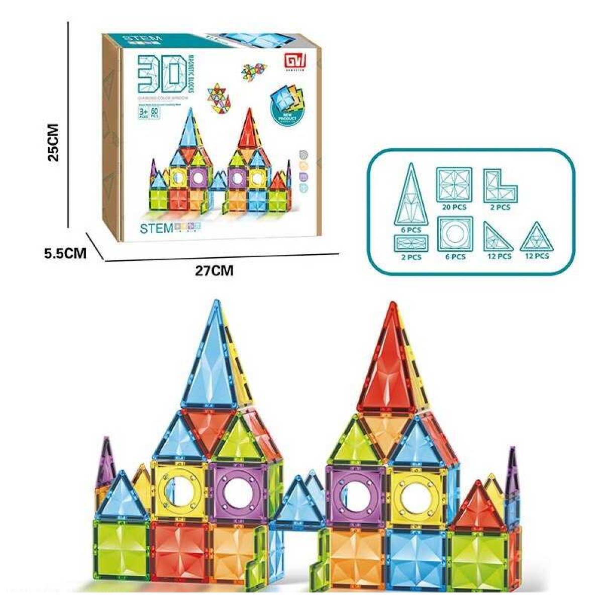Магнітний конструктор GW 8256 (12) 60 деталей, в коробці