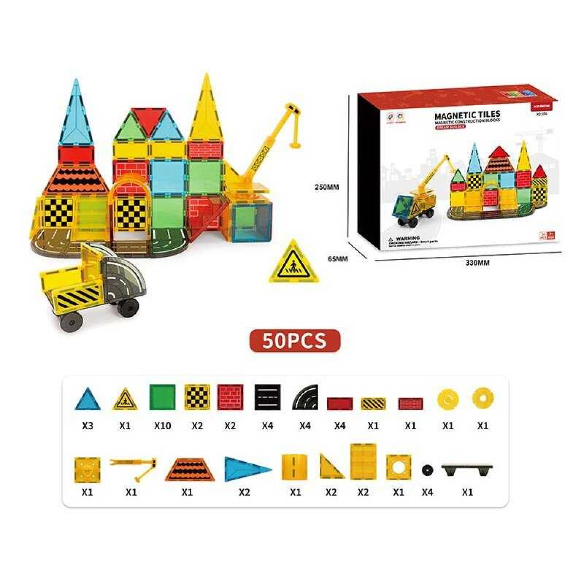 Магнітний конструктор X 2106 (12) “Будівельний майданчик”, 50 деталей, машинка, в коробці