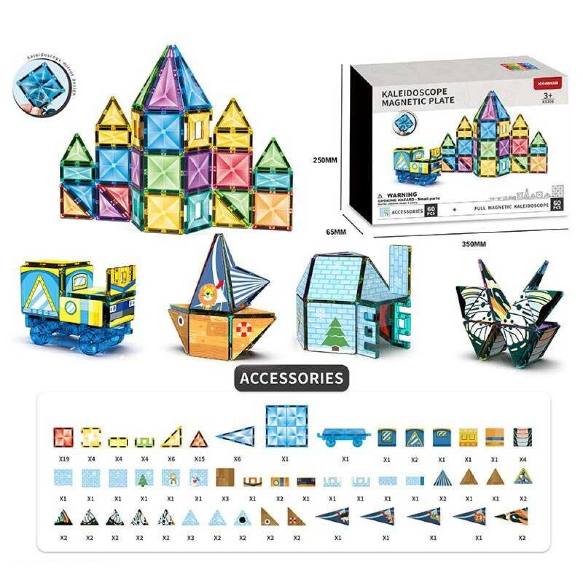 Магнітний конструктор X 5305 (8) 60 деталей, наліпки, в коробці